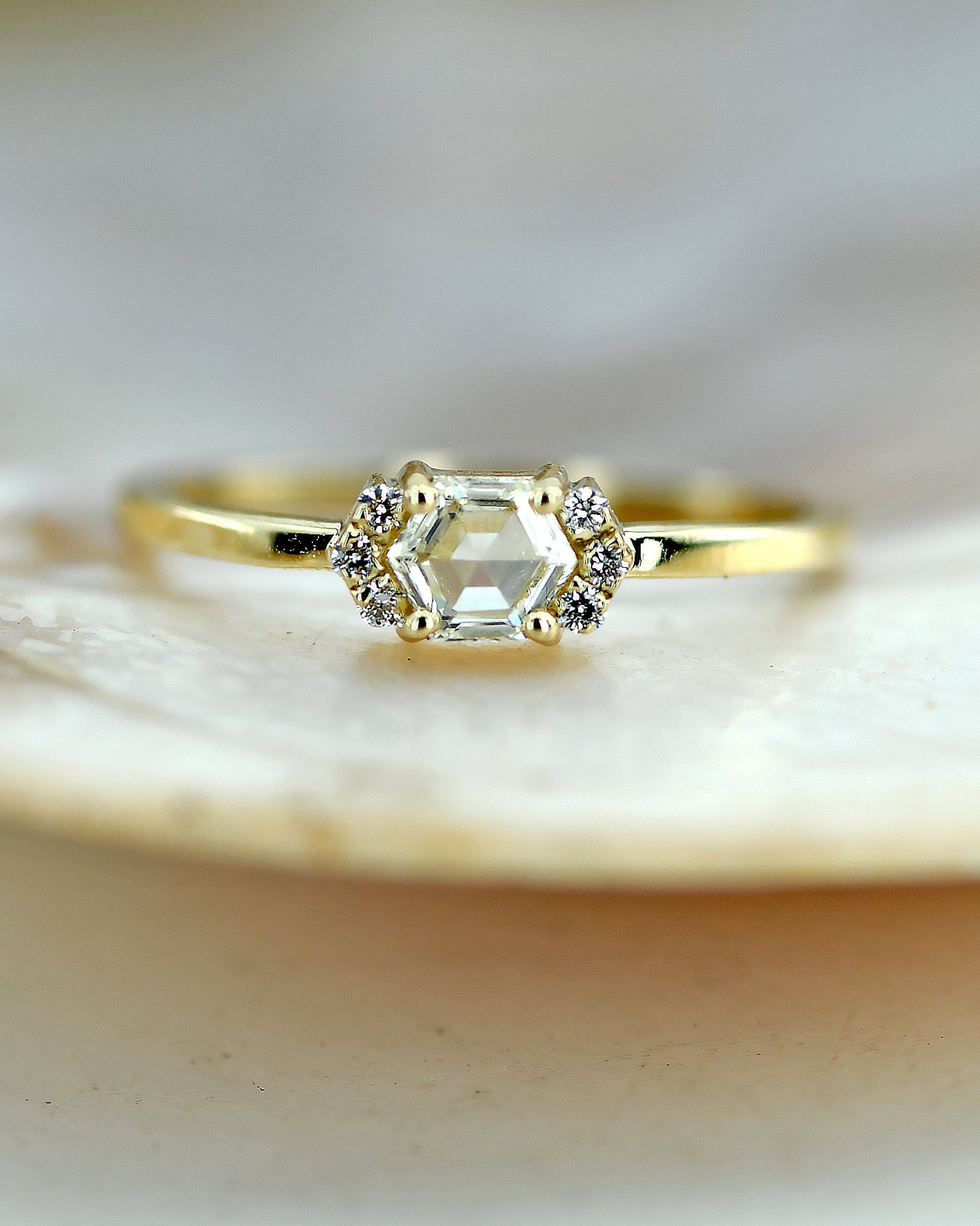 יהלום צהוב טבעי , חיתוך משושה, 0.40 קראט.