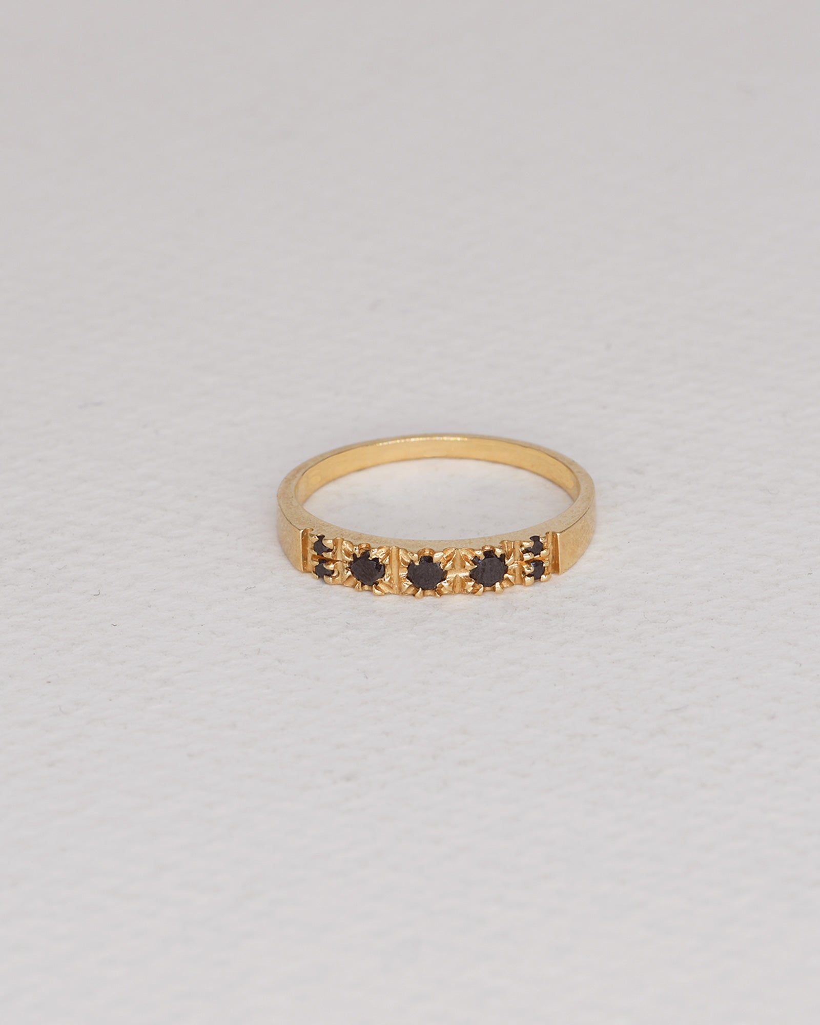 ניתן לבחור בטבעת המשובצת עשרה יהלומים שחורים או שבעה יהלומים שחורים.