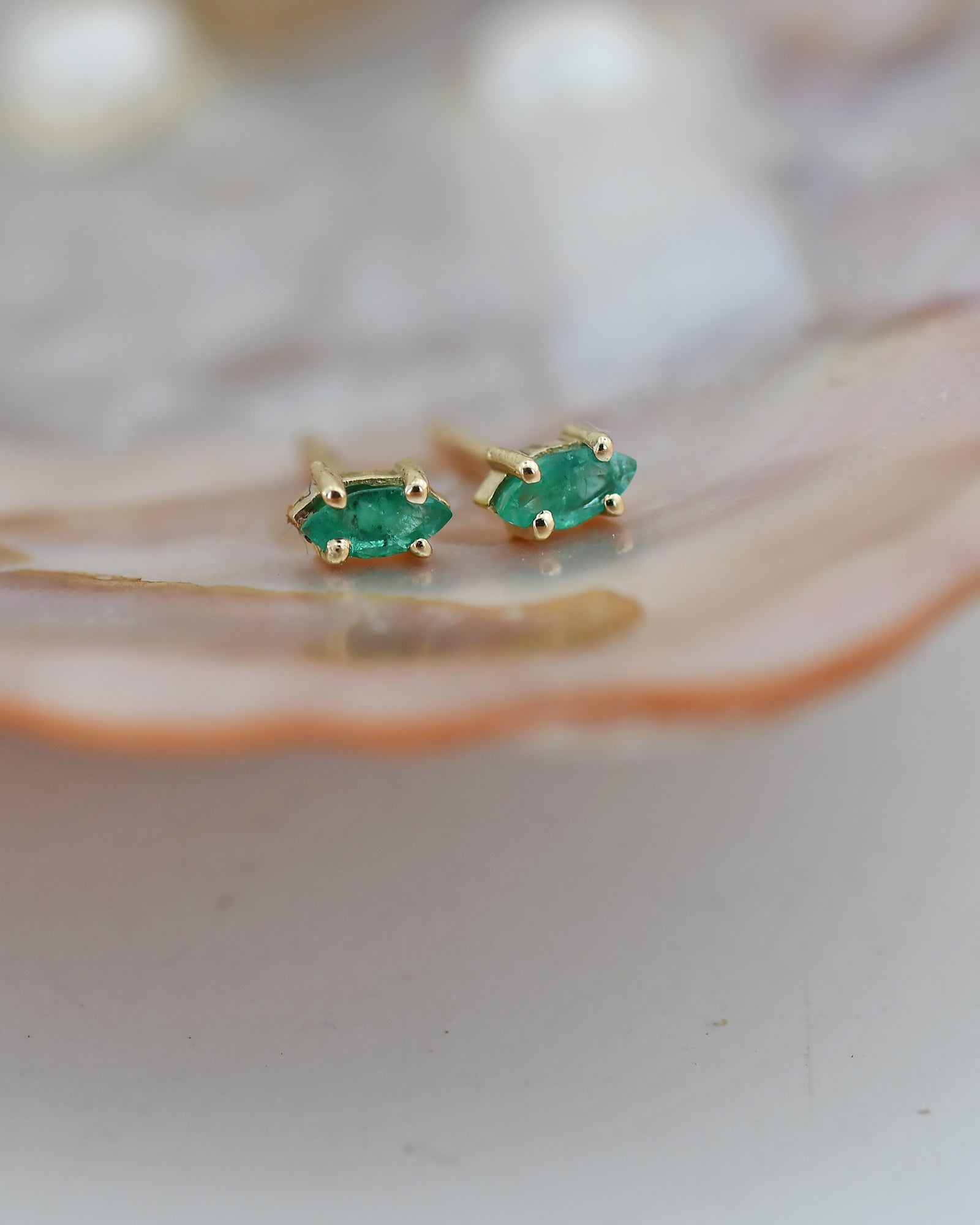 Experience the ultimate blend of charm and intrigue with our MARY stud earrings. Showcasing captivating marqise green...