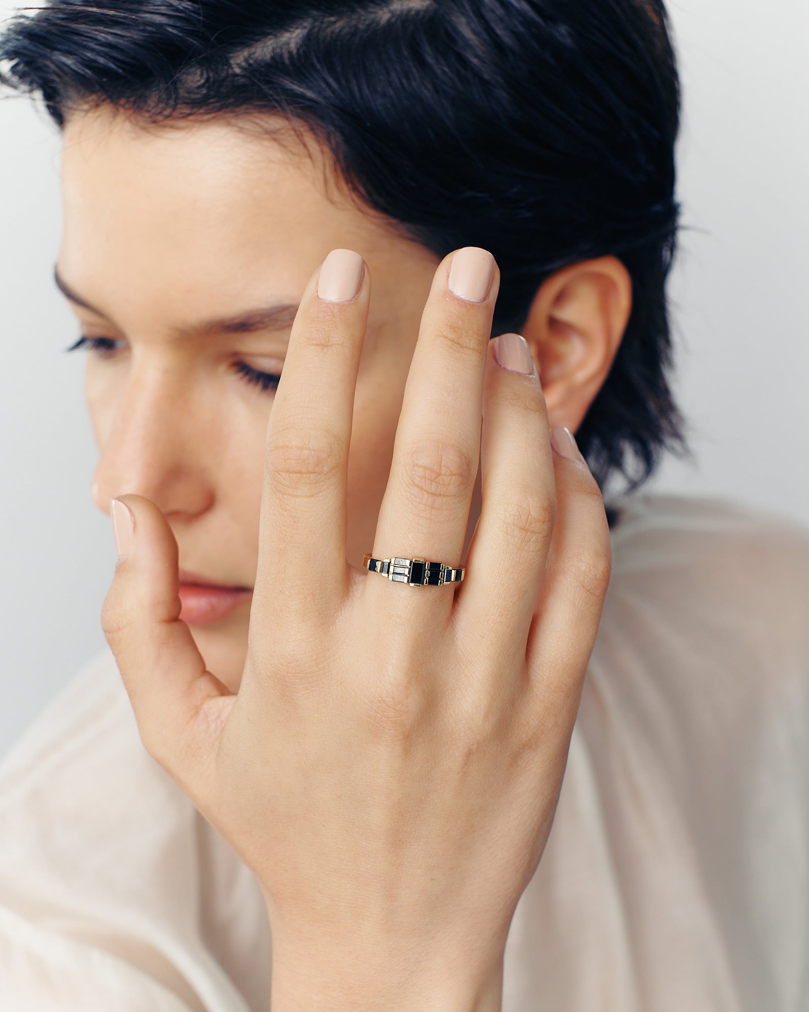 שמונה יהלומים שחורים, חיתוך בגט, 0.40 קראט.