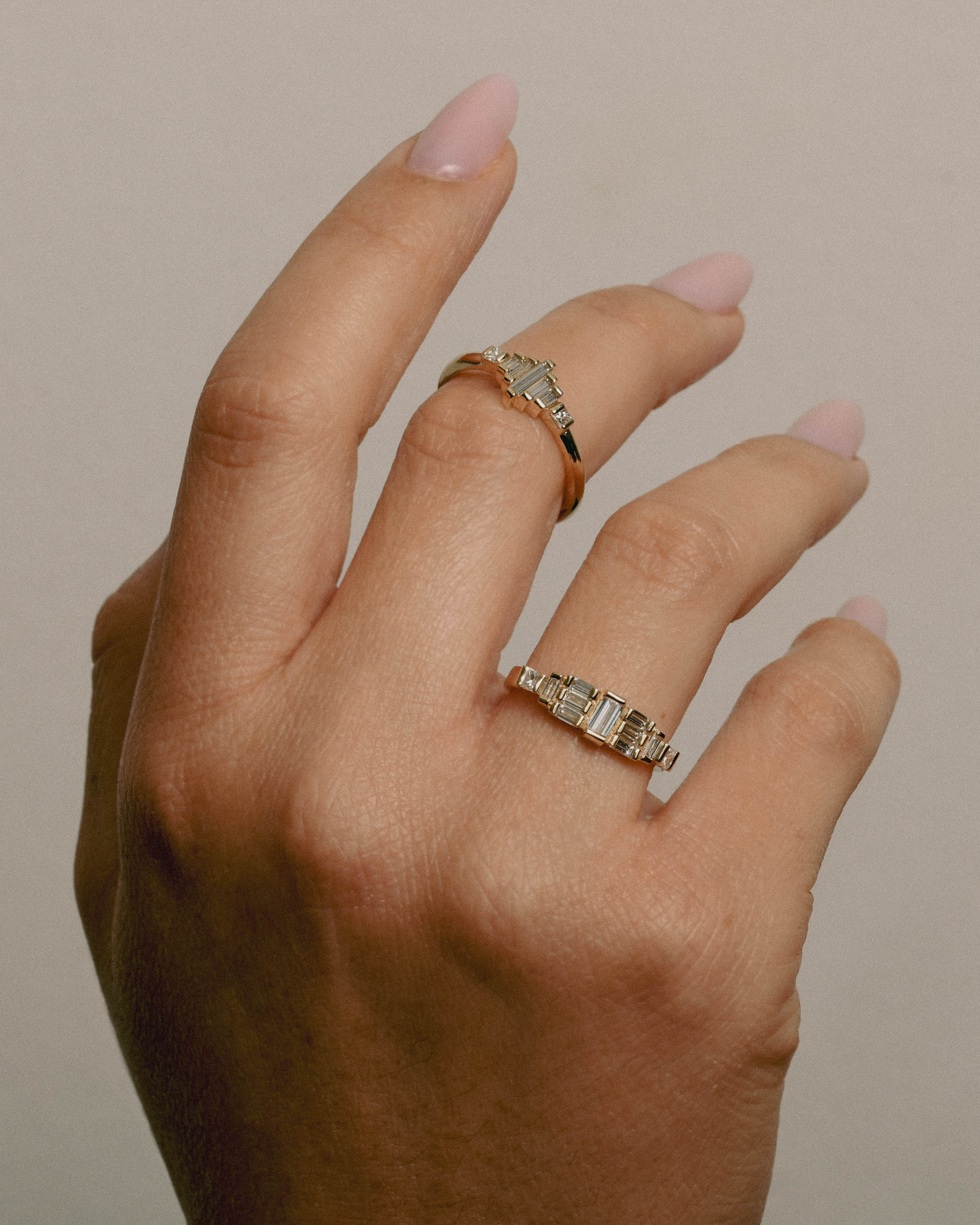 שמונה יהלומים לבנים, חיתוך בגט, 0.40 קראט.
