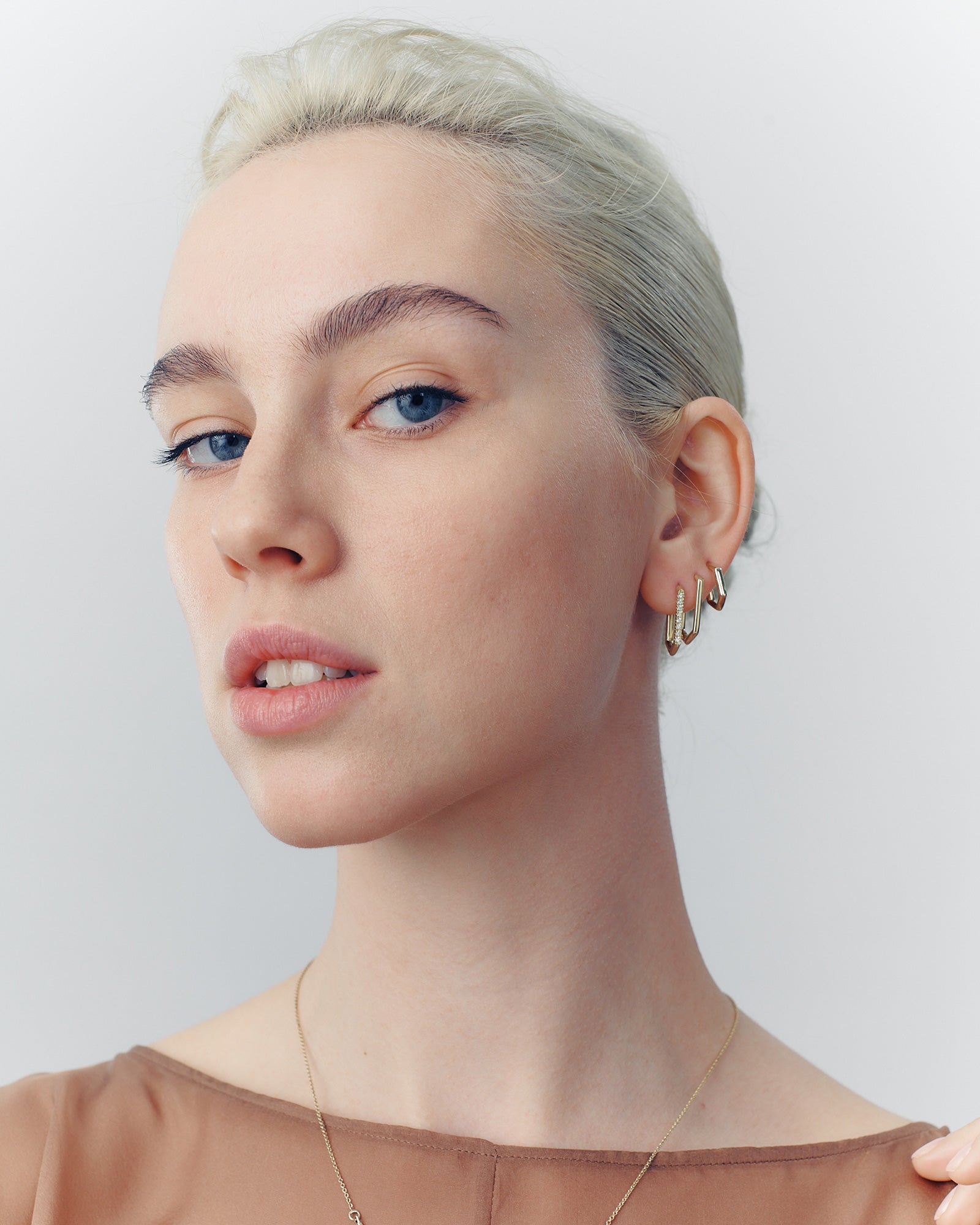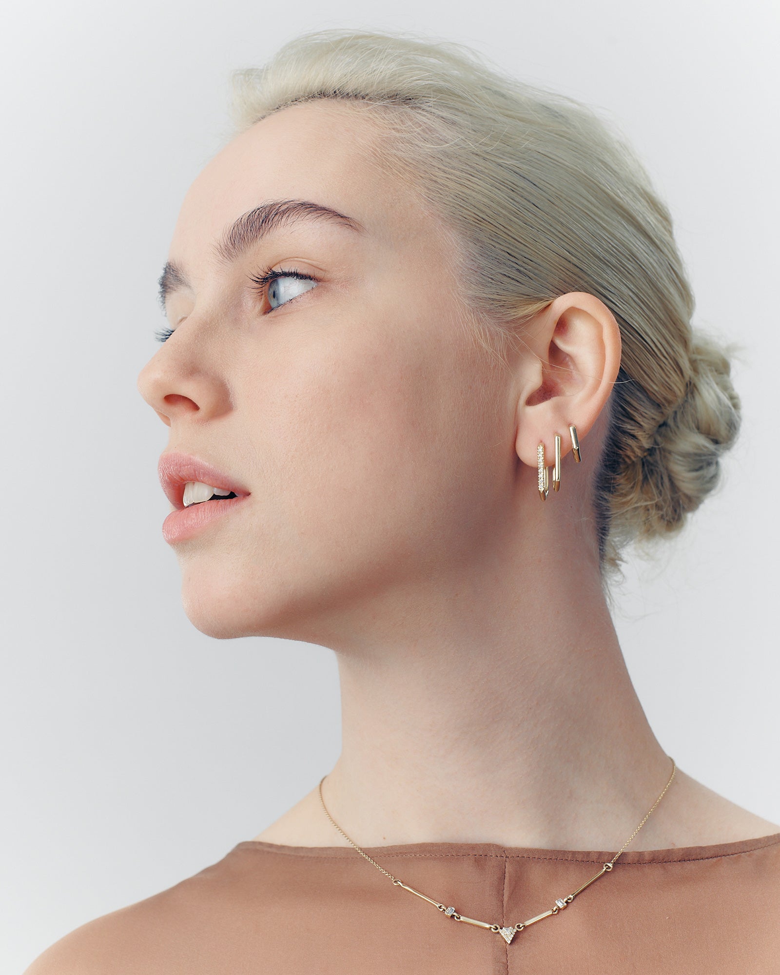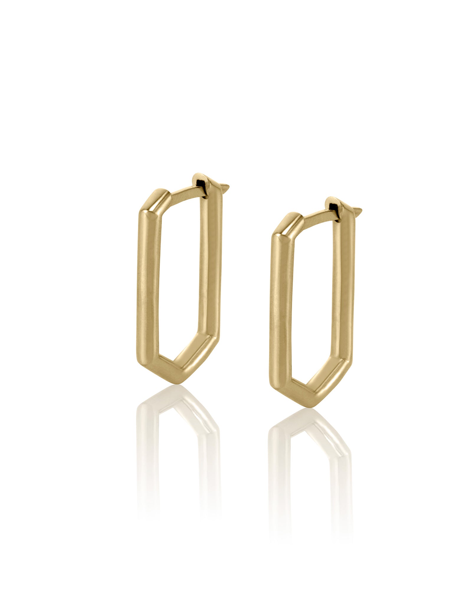 Experience geometric elegance with our Alice hoops, a must-have for hoop lovers seeking something truly unique. Expertly crafted from 14K gold, these hexagon-shaped earrings come in three sizes, ensuring a perfect fit for every style. With their timeless design, you'll want to wear these hoops every day.