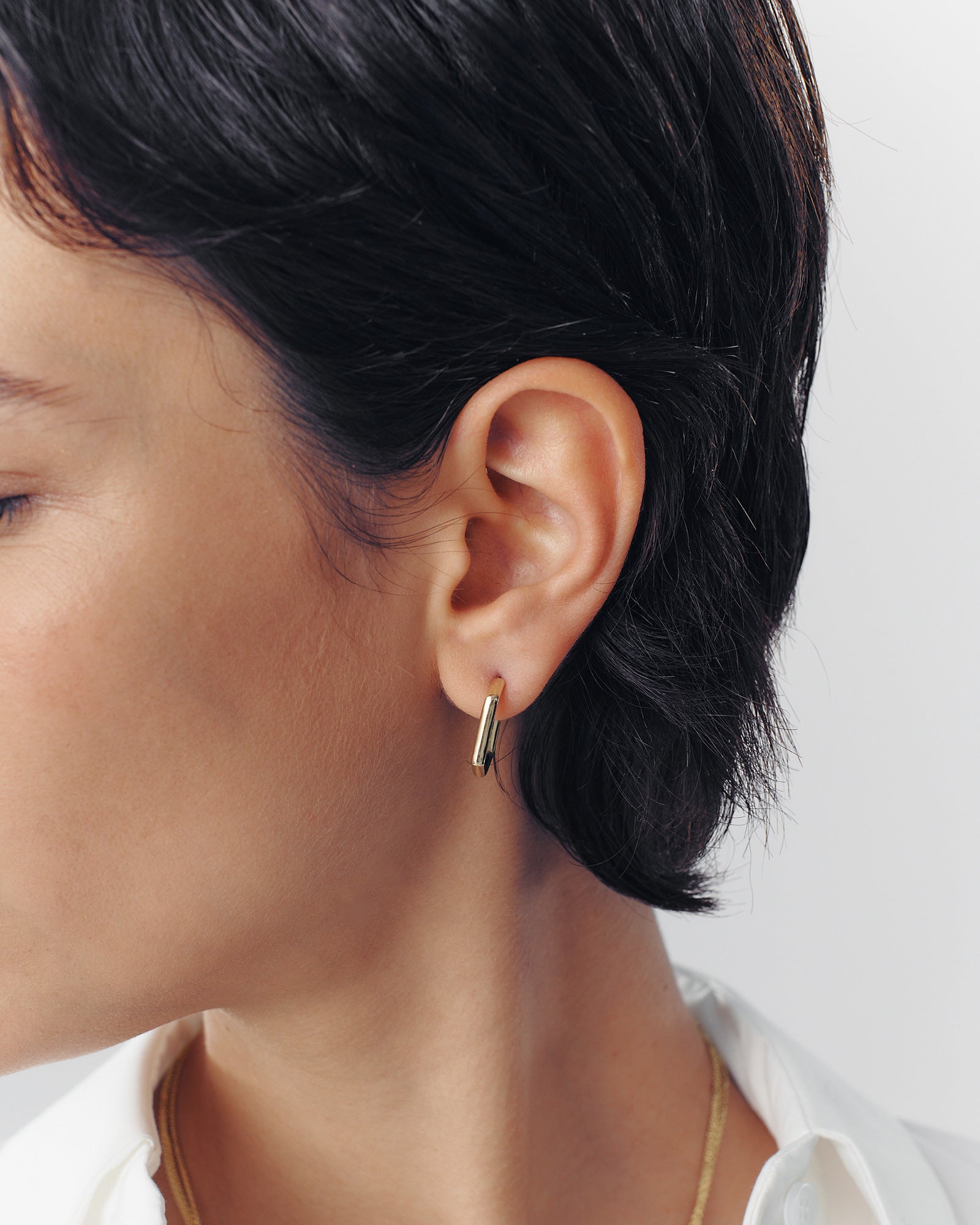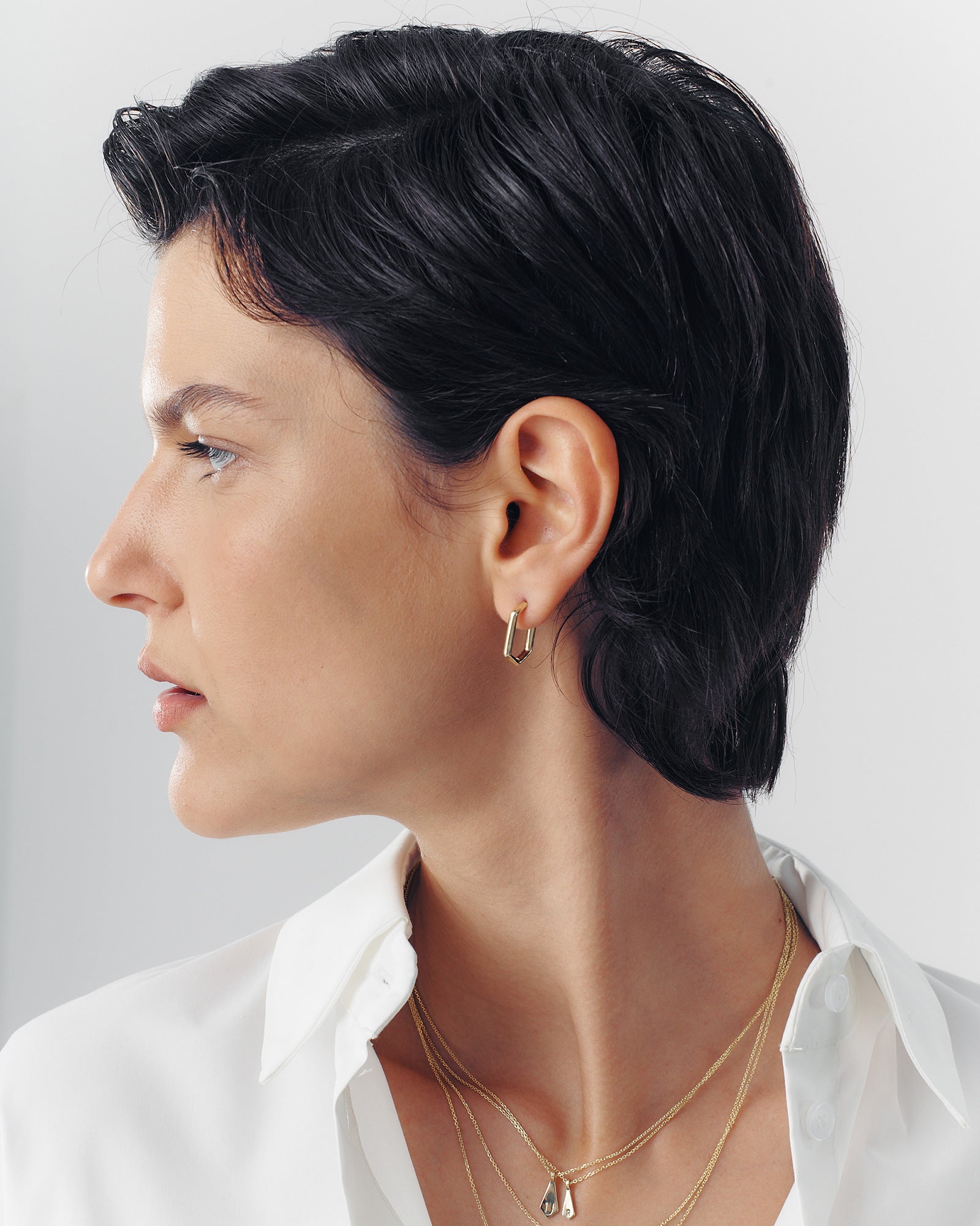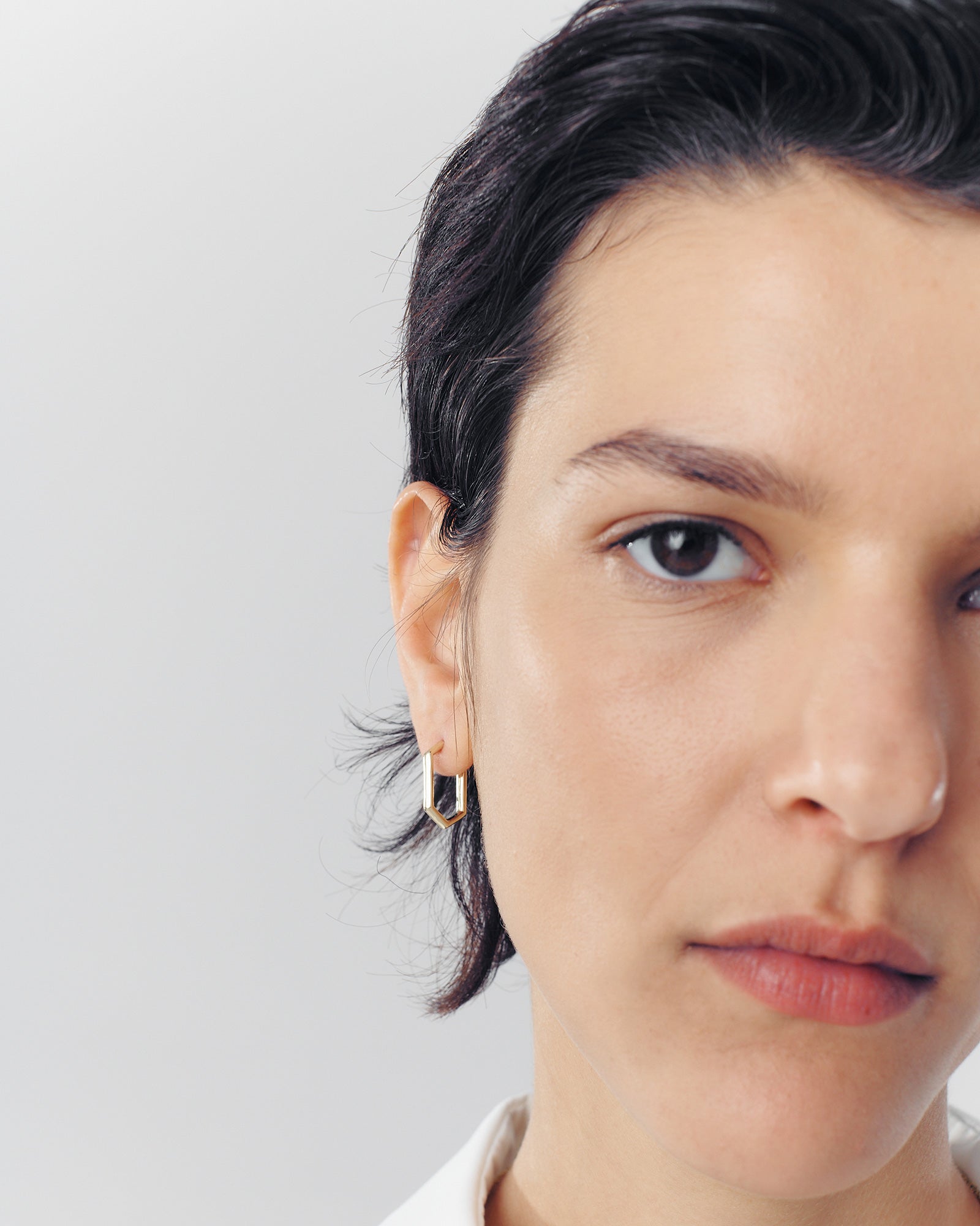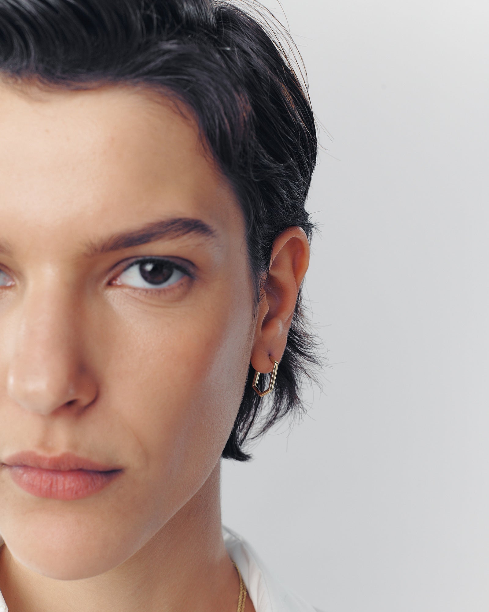 Experience geometric elegance with our Alice hoops, a must-have for hoop lovers seeking something truly unique. Expertly crafted from 14K gold, these hexagon-shaped earrings come in three sizes, ensuring a perfect fit for every style. With their timeless design, you'll want to wear these hoops every day.