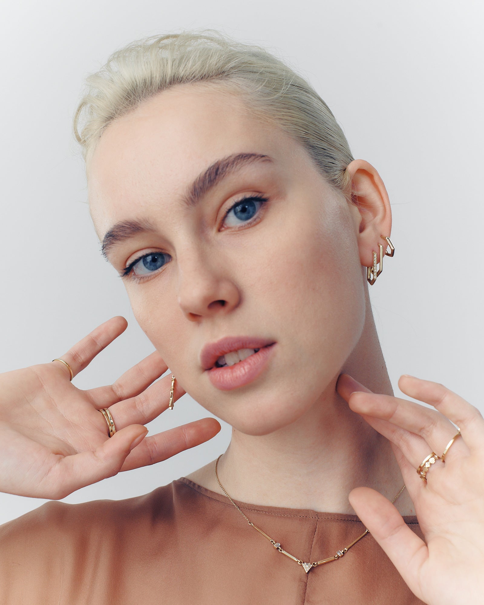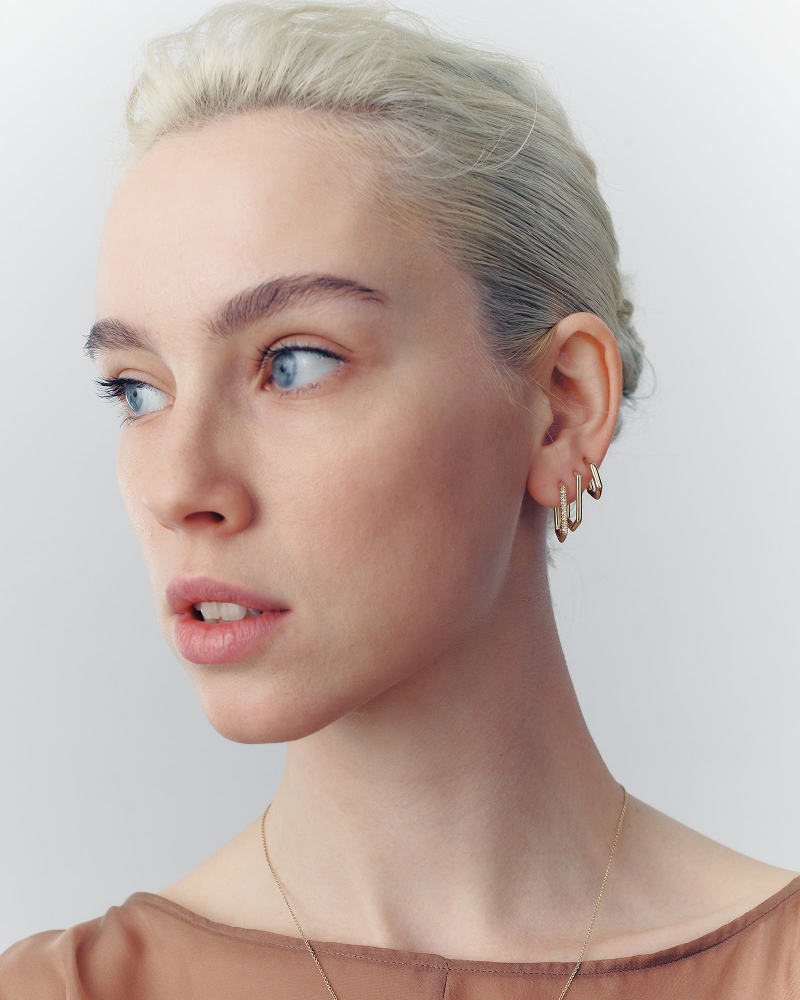 Experience geometric elegance with our Alice hoops, a must-have for hoop lovers seeking something truly unique. Expertly crafted from 14K gold, these hexagon-shaped earrings come in three sizes, ensuring a perfect fit for every style. With their timeless design, you'll want to wear these hoops every day.