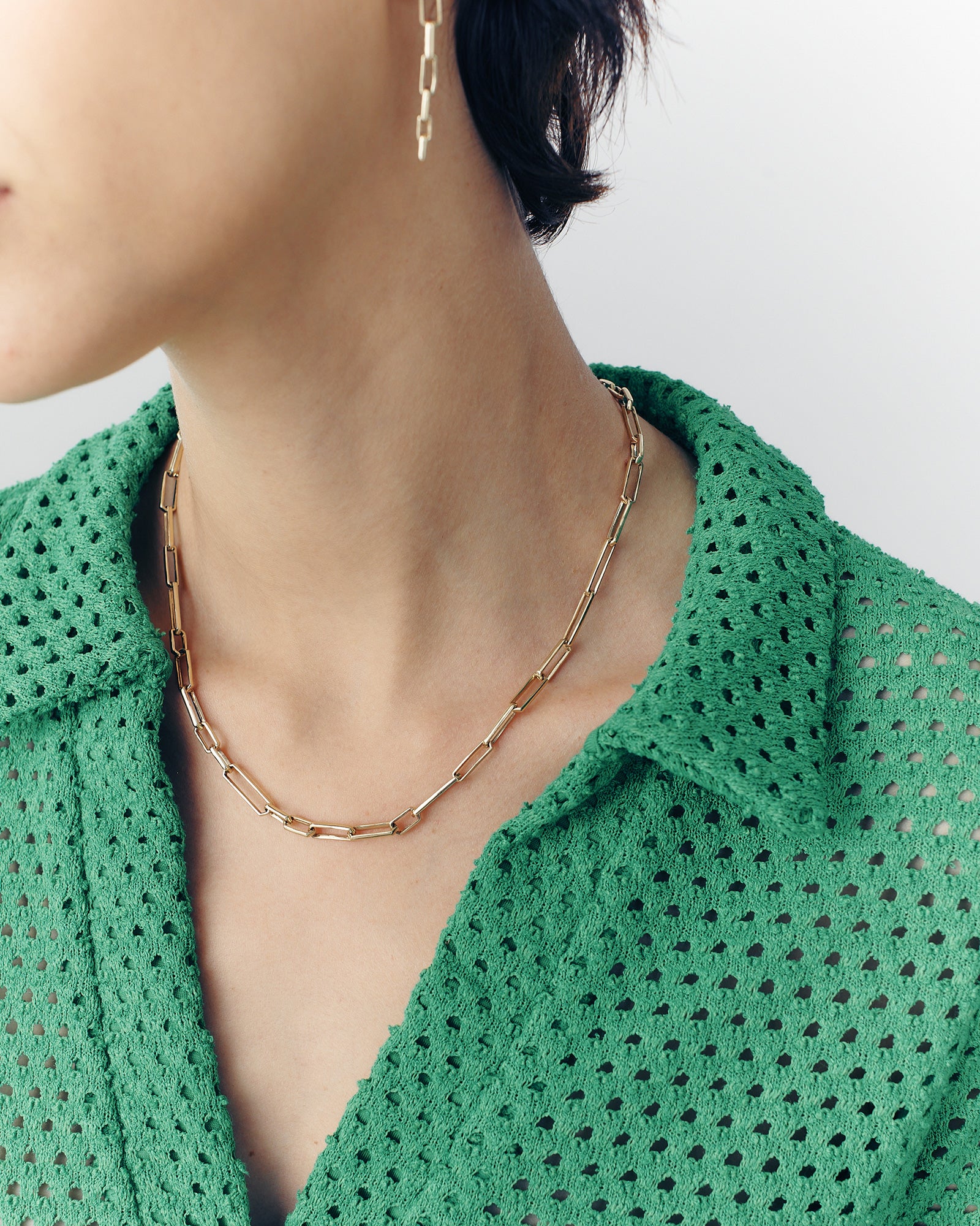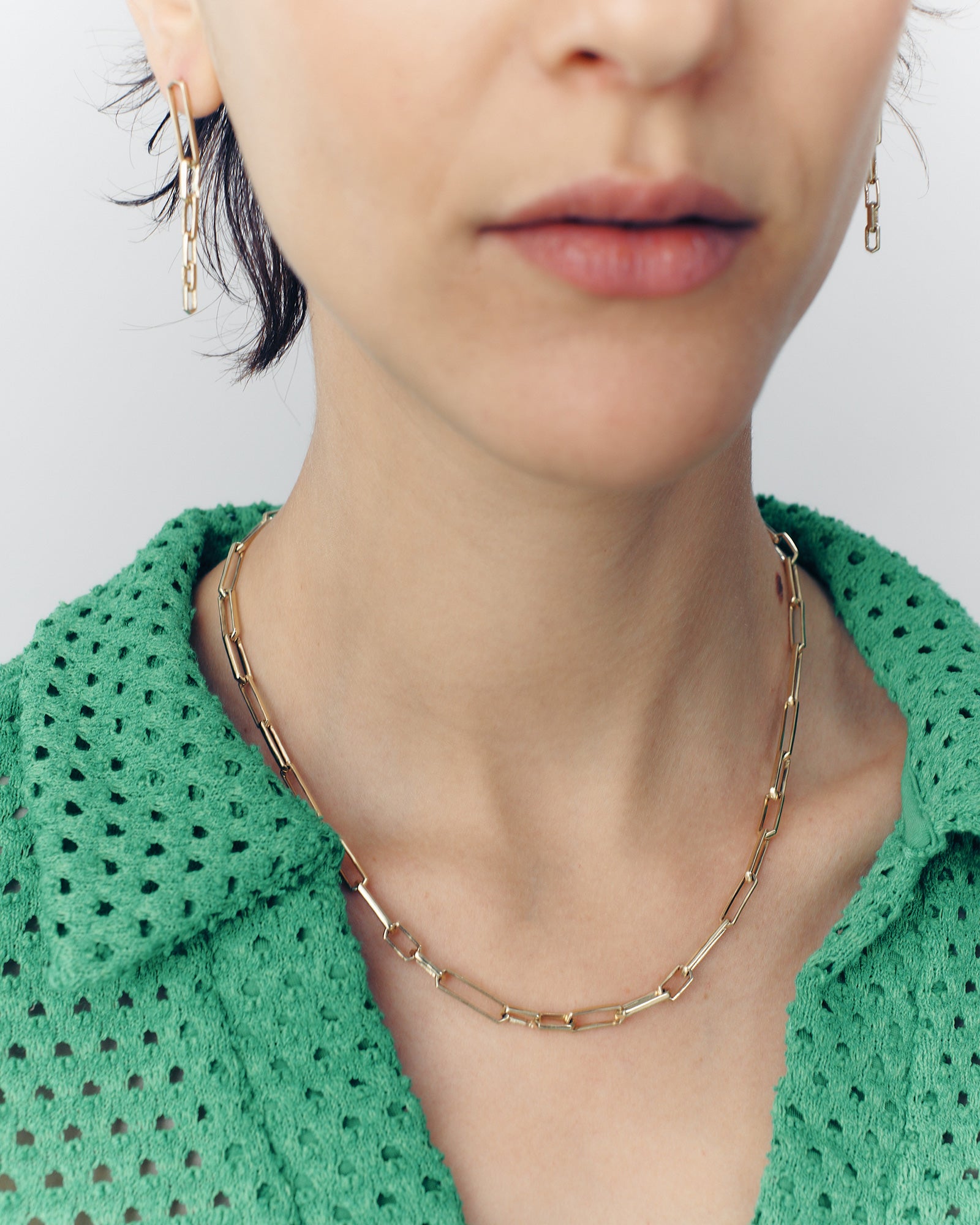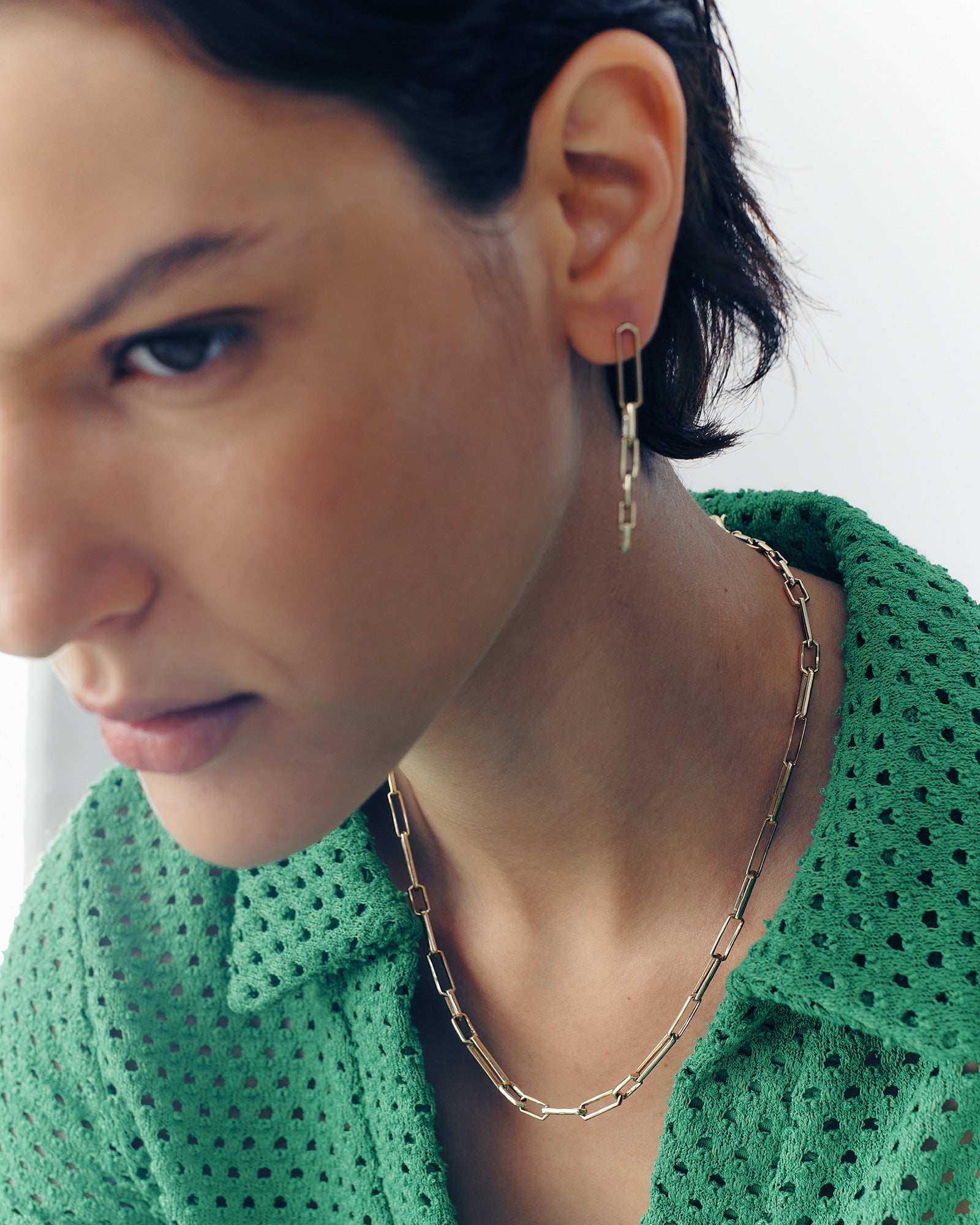 Crafted with precision and attention to detail, the Alice Necklace is a true work of art. Each hexagonal link is made of solid gold and lovingly handmade in our studio, resulting in an edgy yet timeless design. Its unique texture and dazzling shine are a true testament to our commitment to quality and craftsmanship, making it impossible to replicate. Experience the artistry and elegance of the Alice Necklace, a treasure that transcends passing trends and stands as a symbol of timeless beauty.
