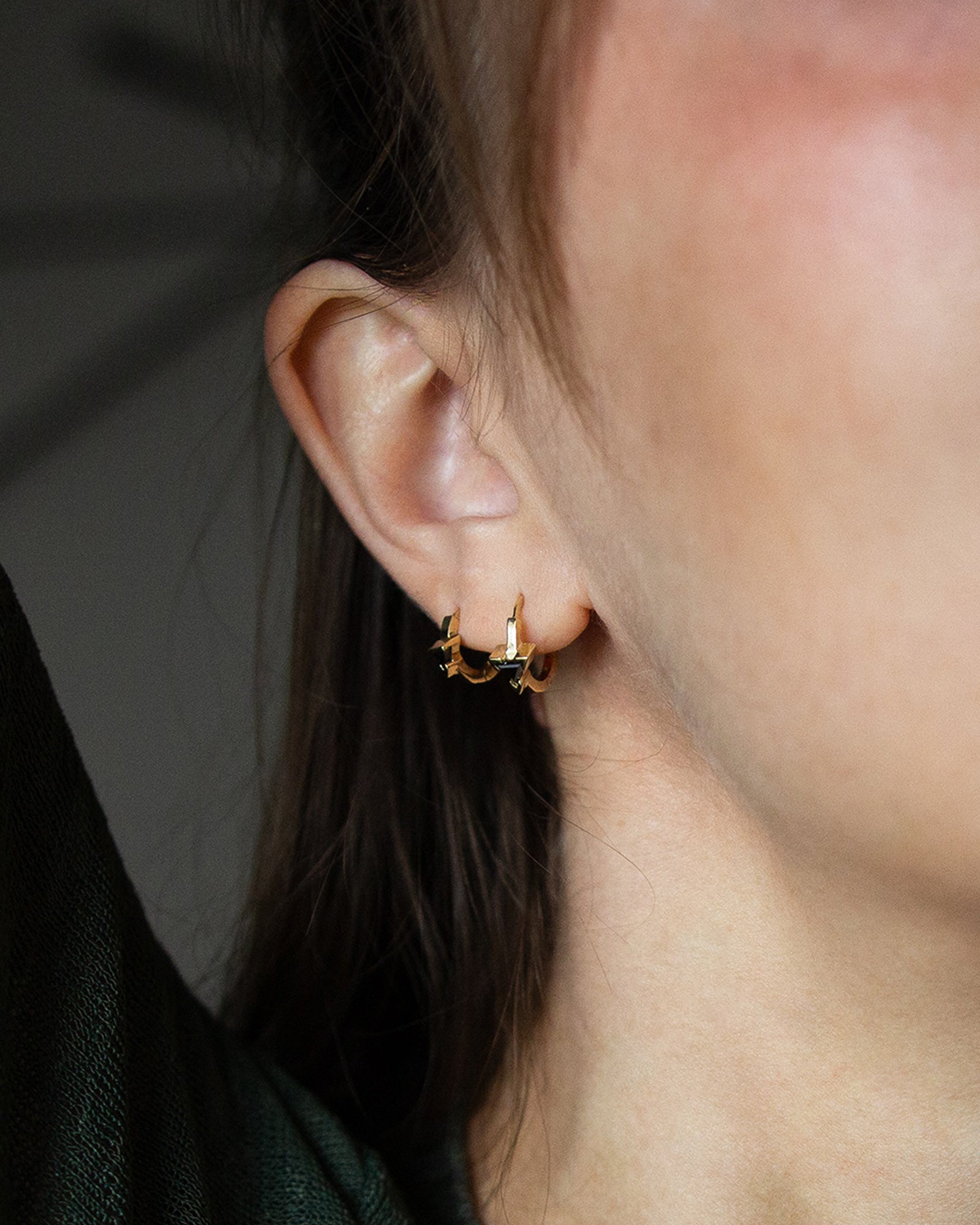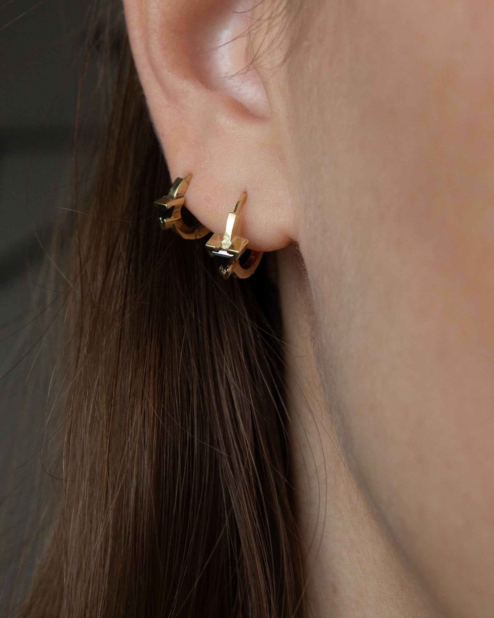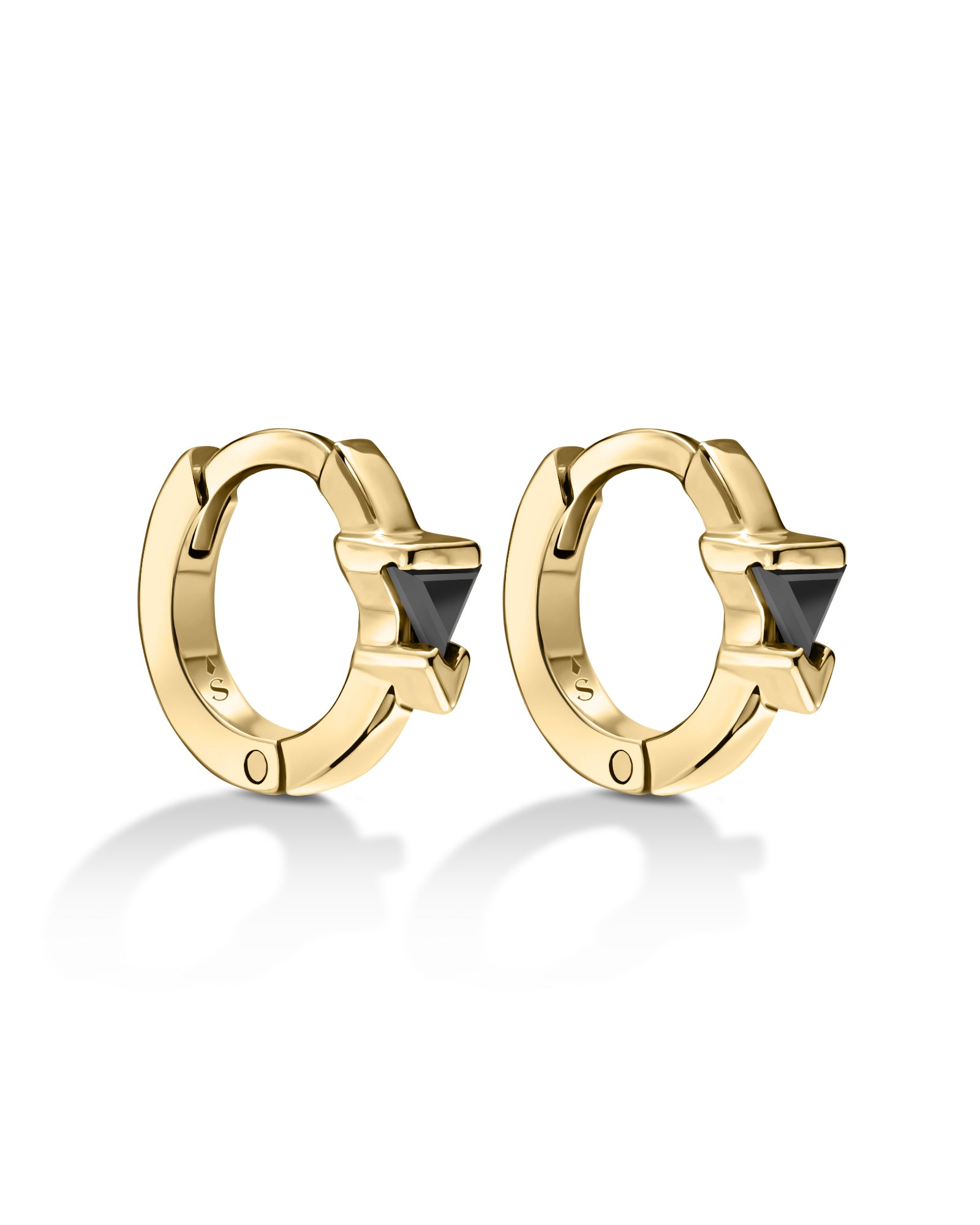 Indulge in the exquisite detailing of the Baby Alpha Hoop Earrings, where each delicate curve echoes a story of modern luxury. Crafted with the allure of gold and adorned with sleek triangular black diamonds, these mini hoops redefine sophistication, creating a mesmerizing play of shadows and brilliance. The petite form elegantly combines elegance and edge, offering a unique and captivating accessory for those who appreciate the artistry of fine jewelry.