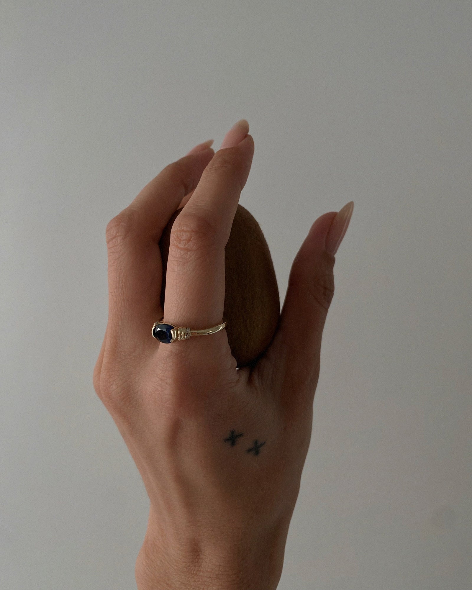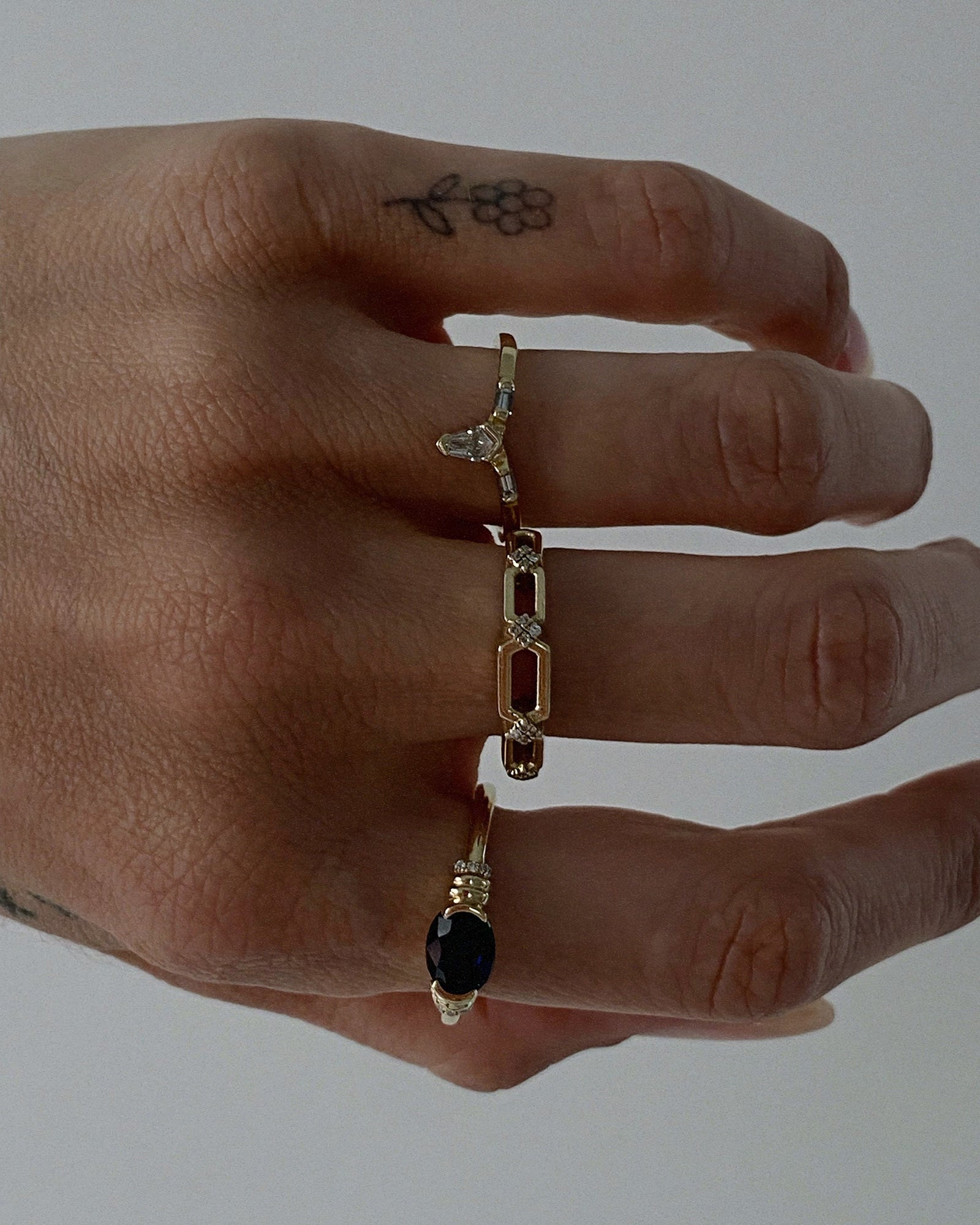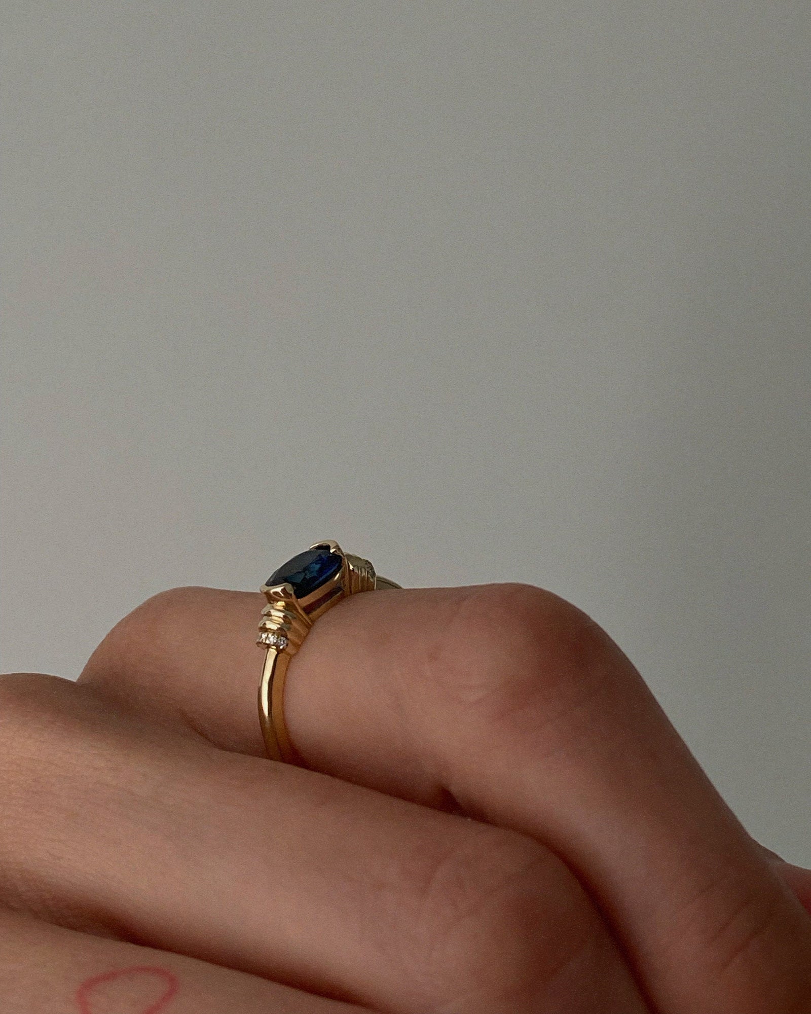 Crowned with a mesmerizing blue sapphire at its heart, the Grace Sapphire Ring carries with it stories of endless skies and the depth of ancient seas. This ring is a piece of history reborn, where the art of bygone elegance meets modern mastery. Each detail of the Grace Ring is a whisper from the past, lovingly handcrafted to adorn your present.