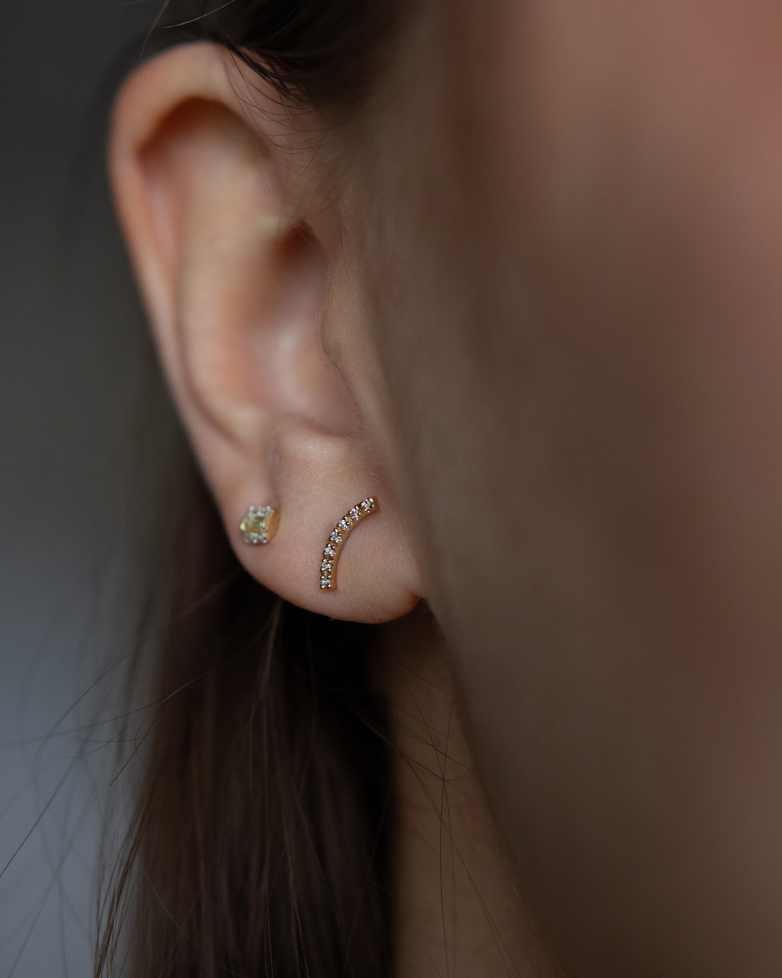 Embrace the splendor found in fine detail with the Curve earring. Enhanced by the radiant sparkle of white diamonds, its gracefully curvy silhouette delicately embraces the ear, exuding a harmonious blend of subtle dynamism and timeless beauty.