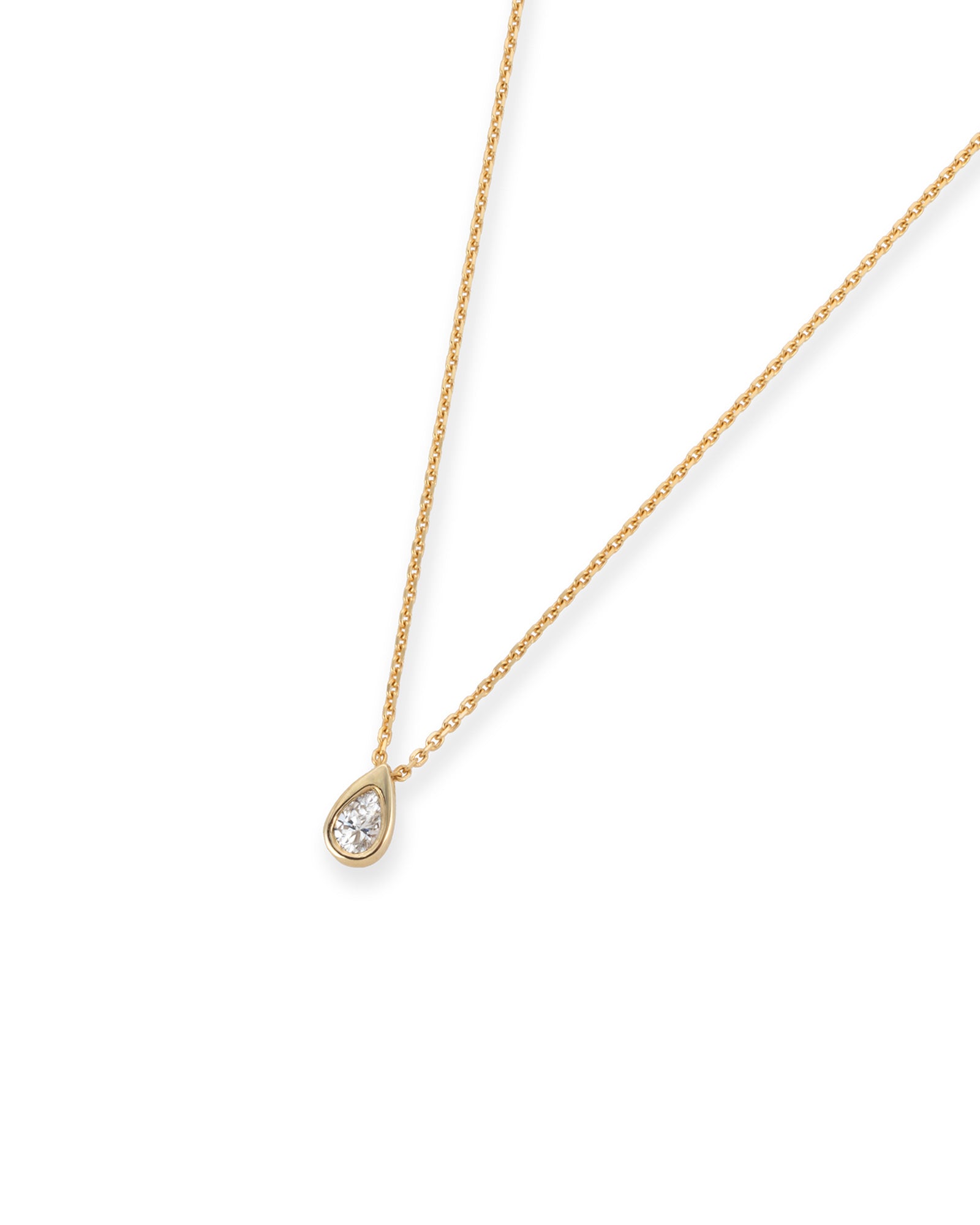 The Drop Necklace is a manifestation of beauty and artistry, where an exquisite form cradles a dazzling full-cut diamond, like a drop suspended in time, radiating with a brilliant sparkle. Each intricate detail of this refined masterpiece captures the heart, transforming the Drop Necklace into a symbol of elegance that transcends the ordinary.