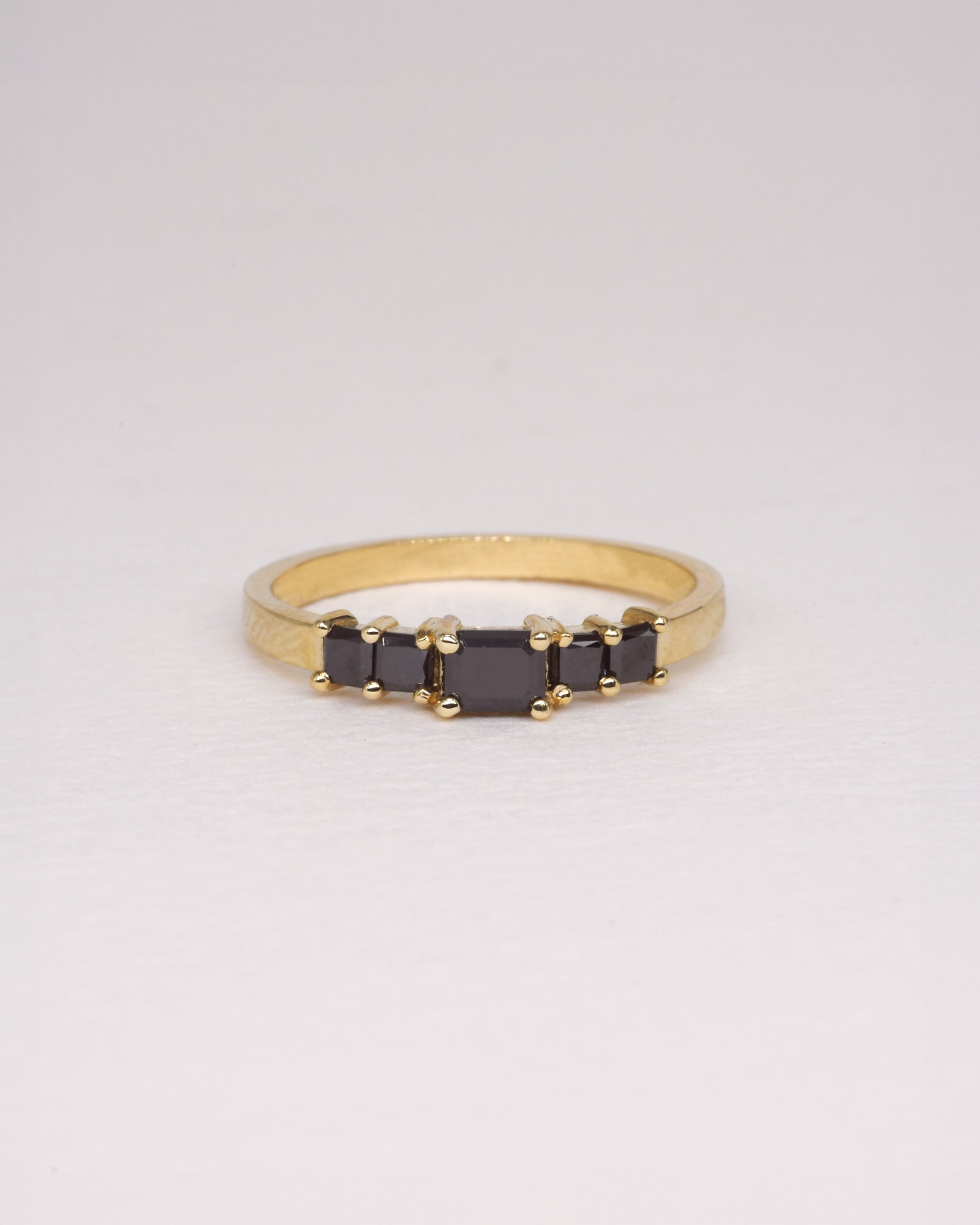 With a minimalistic touch, the Emilia Black Diamonds Ring offers a blend of depth anddesign. Its seamless gold band wraps your finger with deep tones of flawlessly aligned black diamonds, in a celebration of mystery and allure. This exquisite ring performs a delicate dance between the bold and the refined, perfect for those who seek beauty in balance.