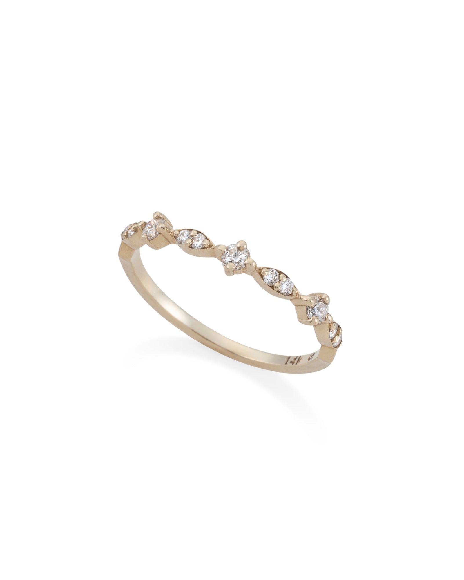 Embrace the shimmering essence of timeless elegance with our delicate Eve ring. Set with glistening white diamonds, it resembles a mini tiara, exuding a vision of regal beauty and grace. Experience the allure of royalty with this exquisite piece that captures hearts with its enchanting design.