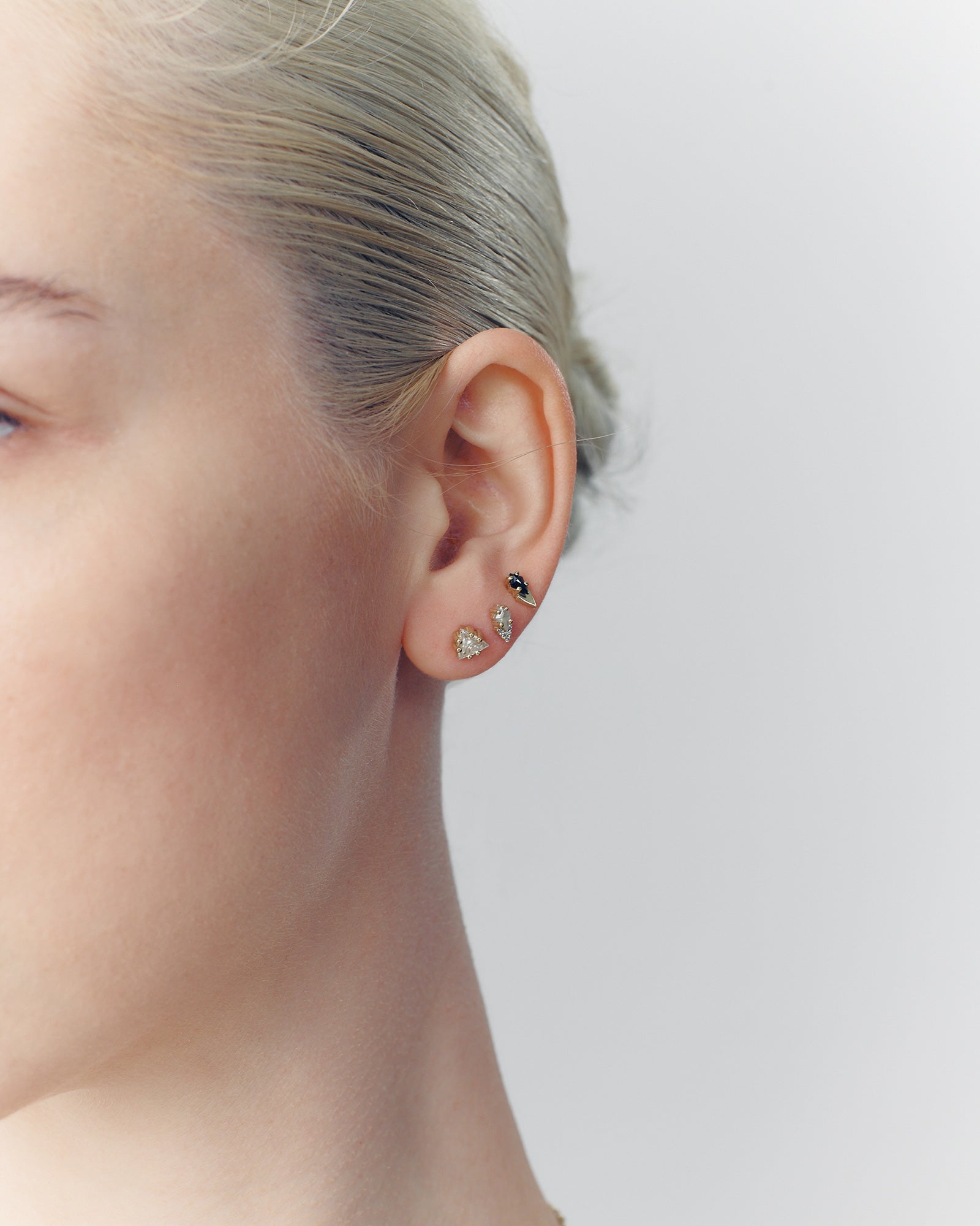Add a subtle element to your collection with our Gamma Black Diamond stud earrings. Featuring unique kite-cut black diamonds set in gold, they effortlessly mix and match with any style for a versatile look.