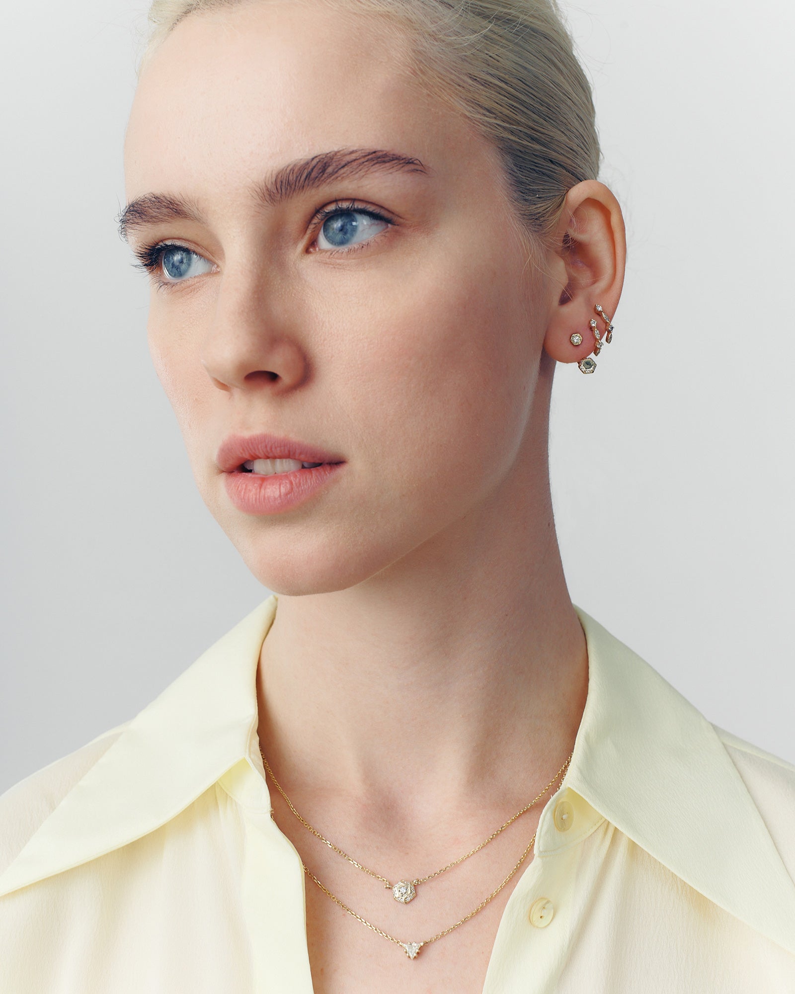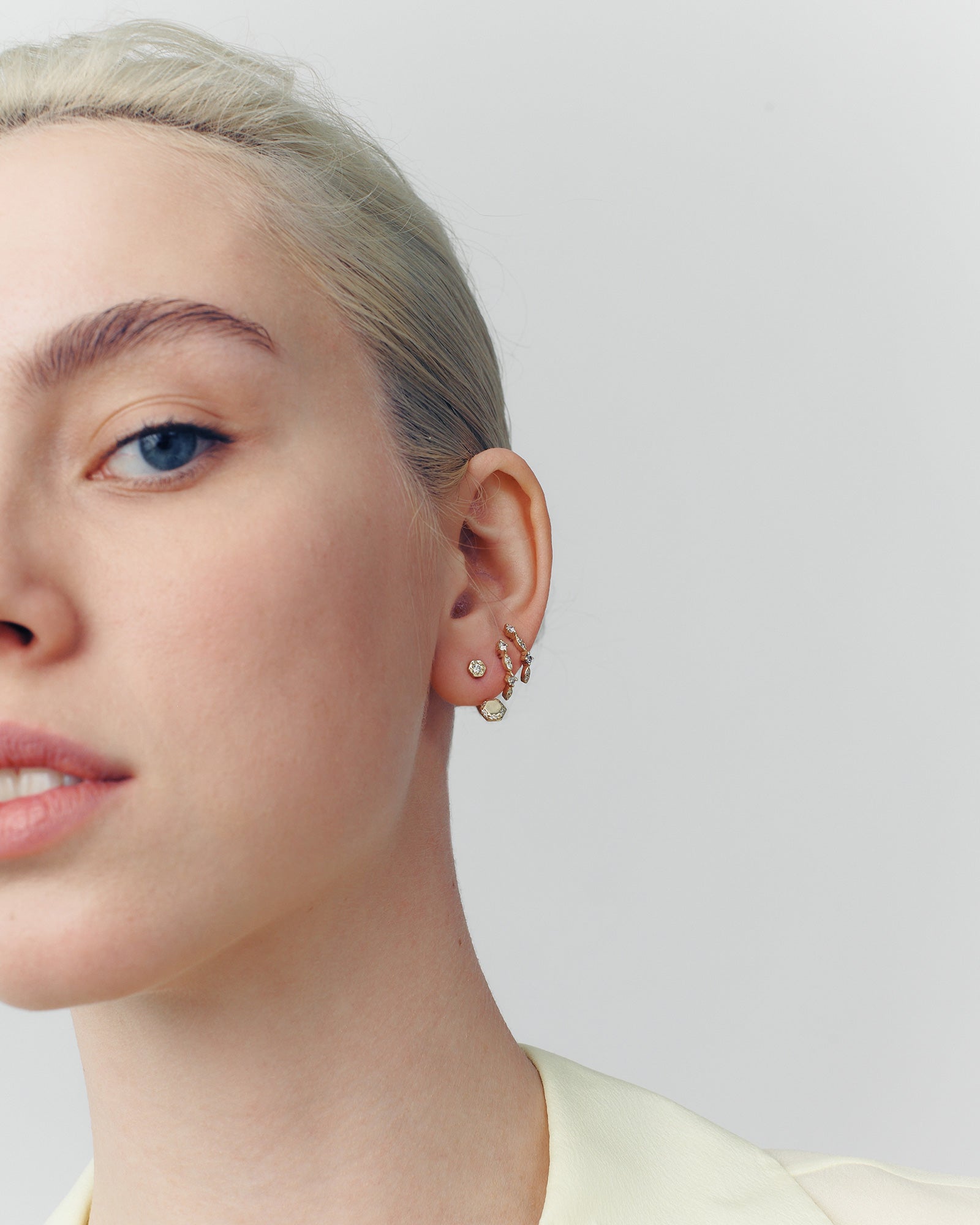 Adorn your ears with the exquisite Ivy earrings, crafted with delicate precision and set with a sequence of mesmerising white diamonds that gracefully caress your ear. Their mild curve and dazzling sparkle make them the perfect earrings for a touch of timeless glamour.