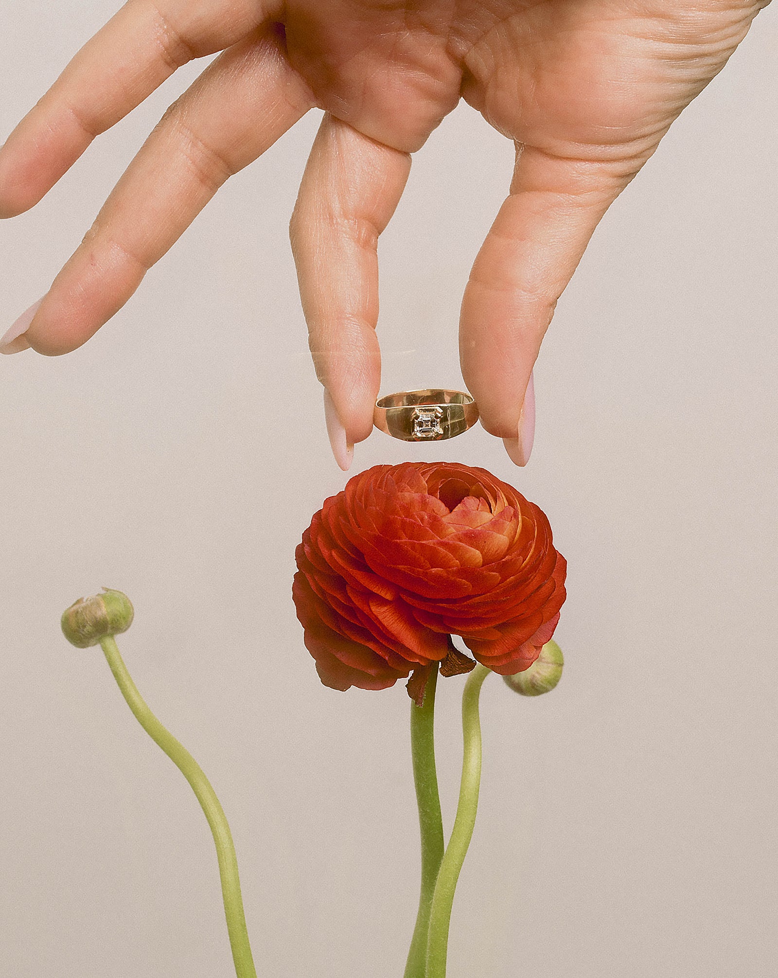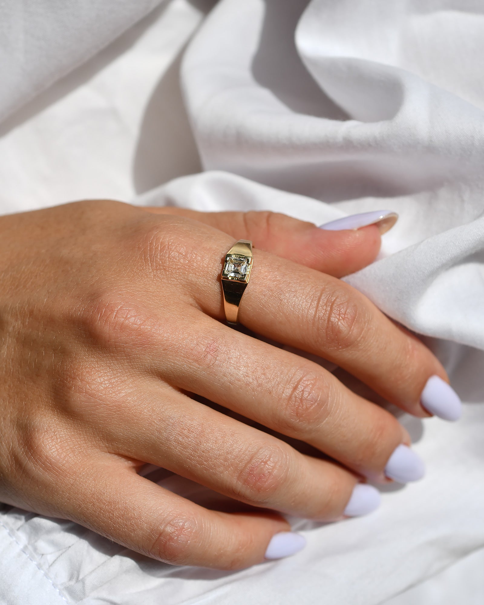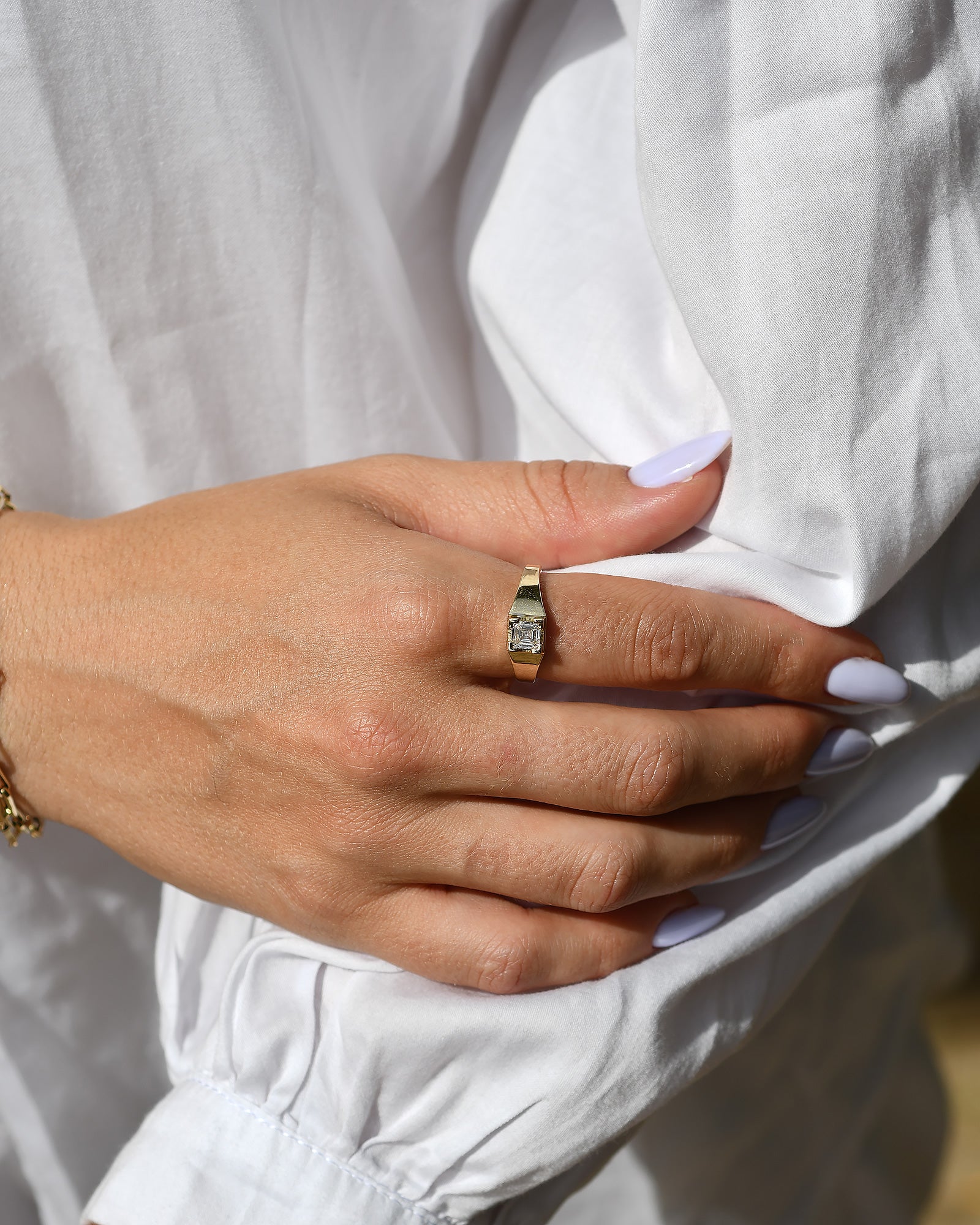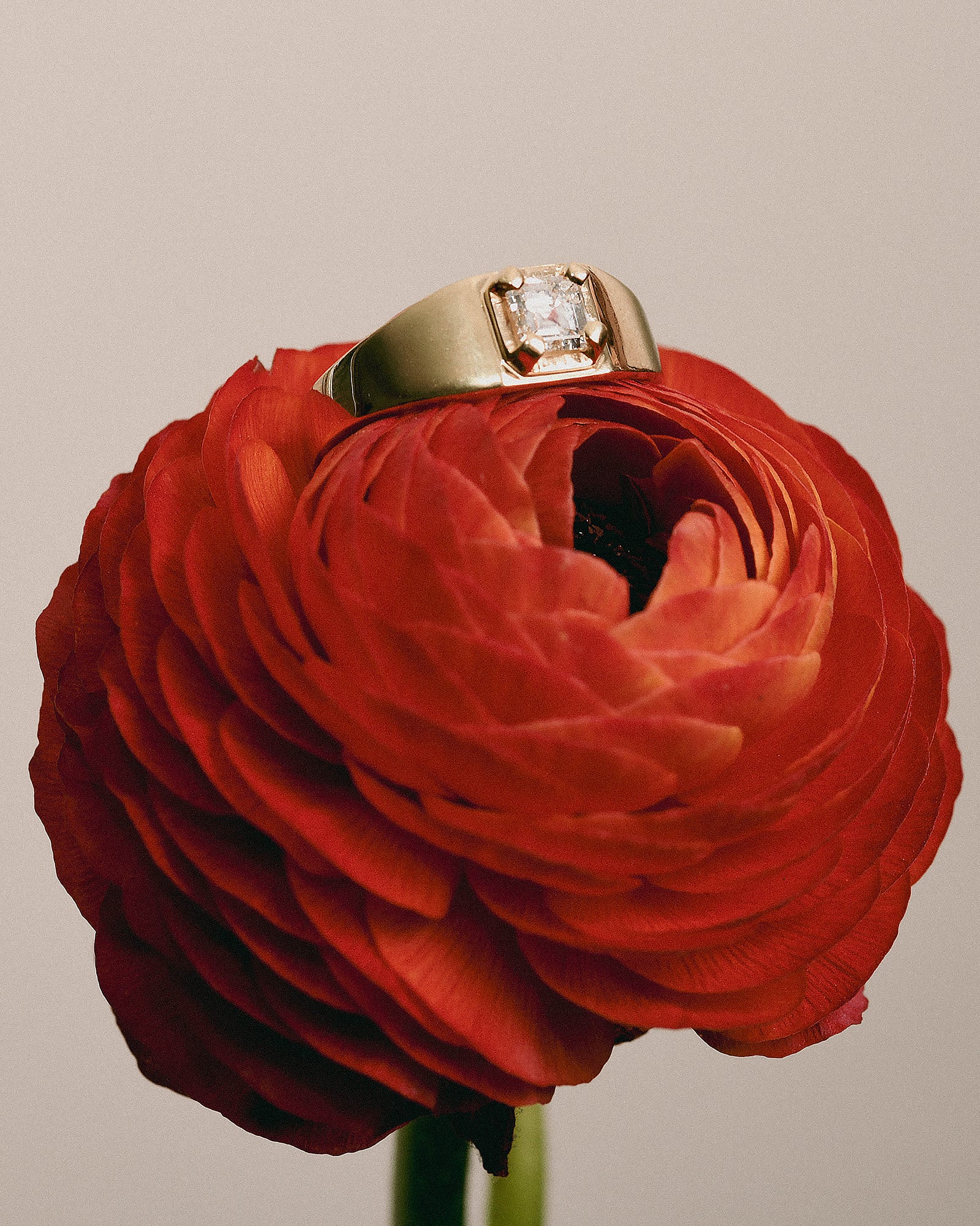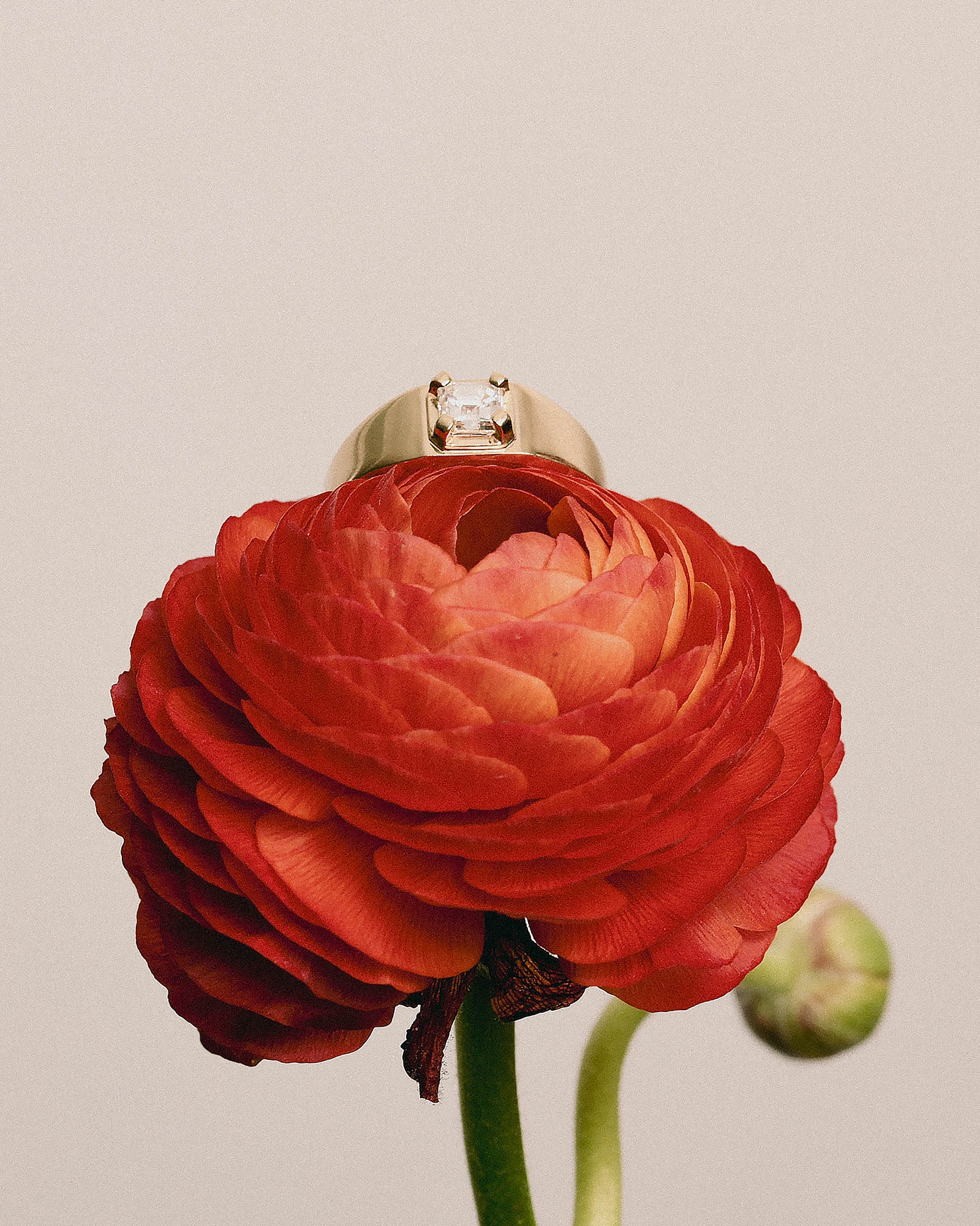 The Jasmine Ring enchants with its graceful design. Its rounded and full shape gives it an exceptionally delicate appearance, serving as the perfect stage for the magnificent emerald-cut square diamond at its center. This exquisite ring is the ideal choice for those seeking a classic piece with a striking presence.