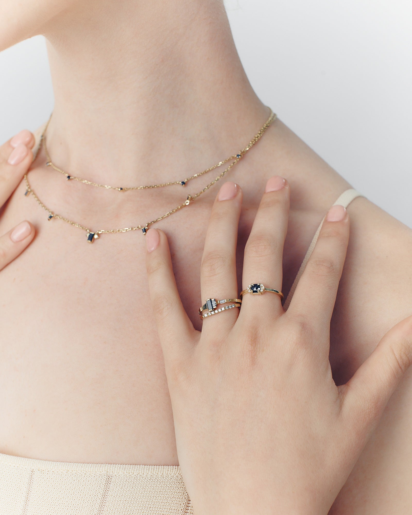 Unveil your distinct radiance with our exquisite Lara ring. Adorned with six sparkling white diamonds, the captivating gray diamond commands the center stage, accentuated and celebrated for its unique beauty.