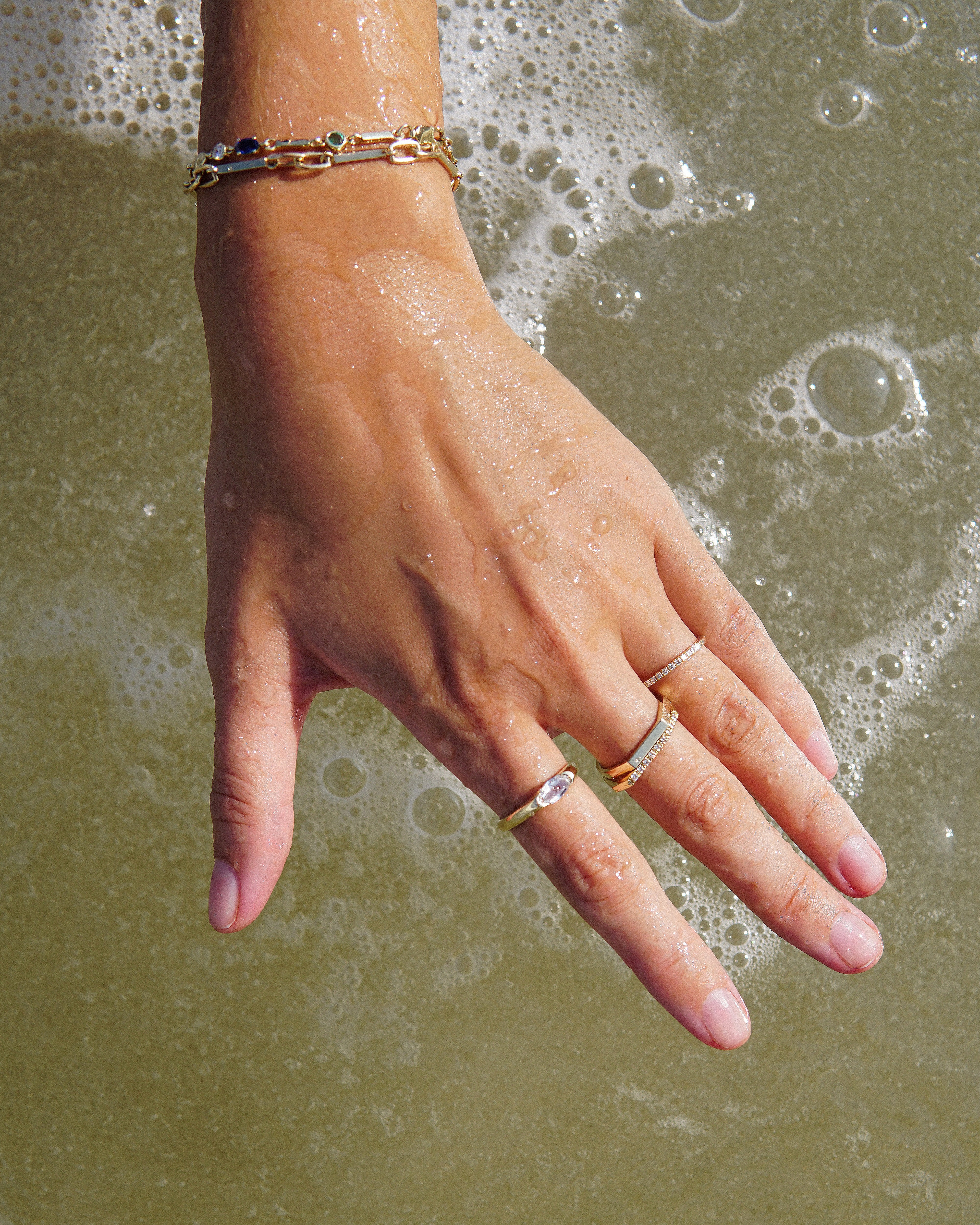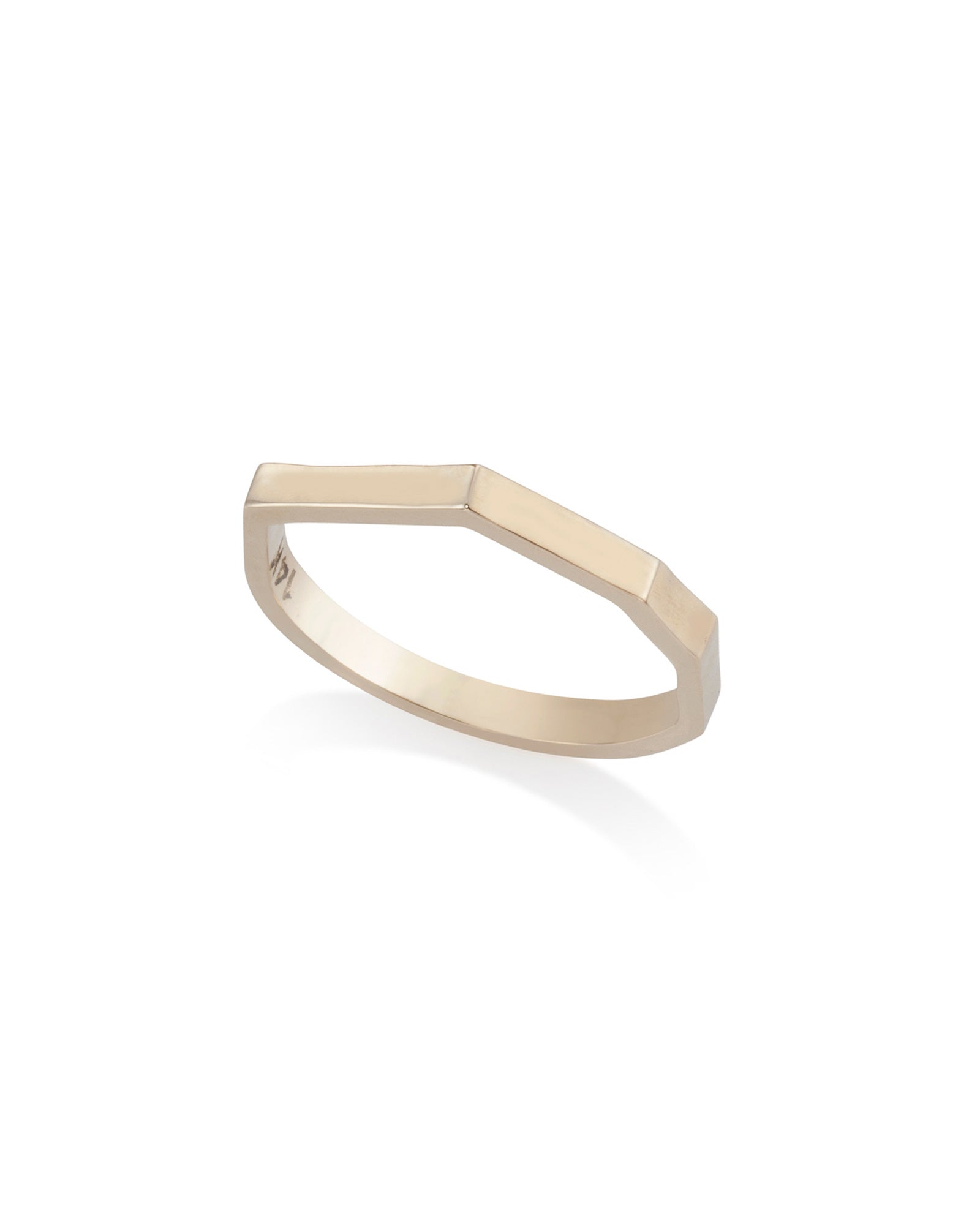 Discover the modern charm of Lisbon, a solid gold band ring designed with an eye-catching geometric front. Its sleek aesthetic allows it to effortlessly mix and match with other pieces, adding a touch of contemporary flair to any ensemble.