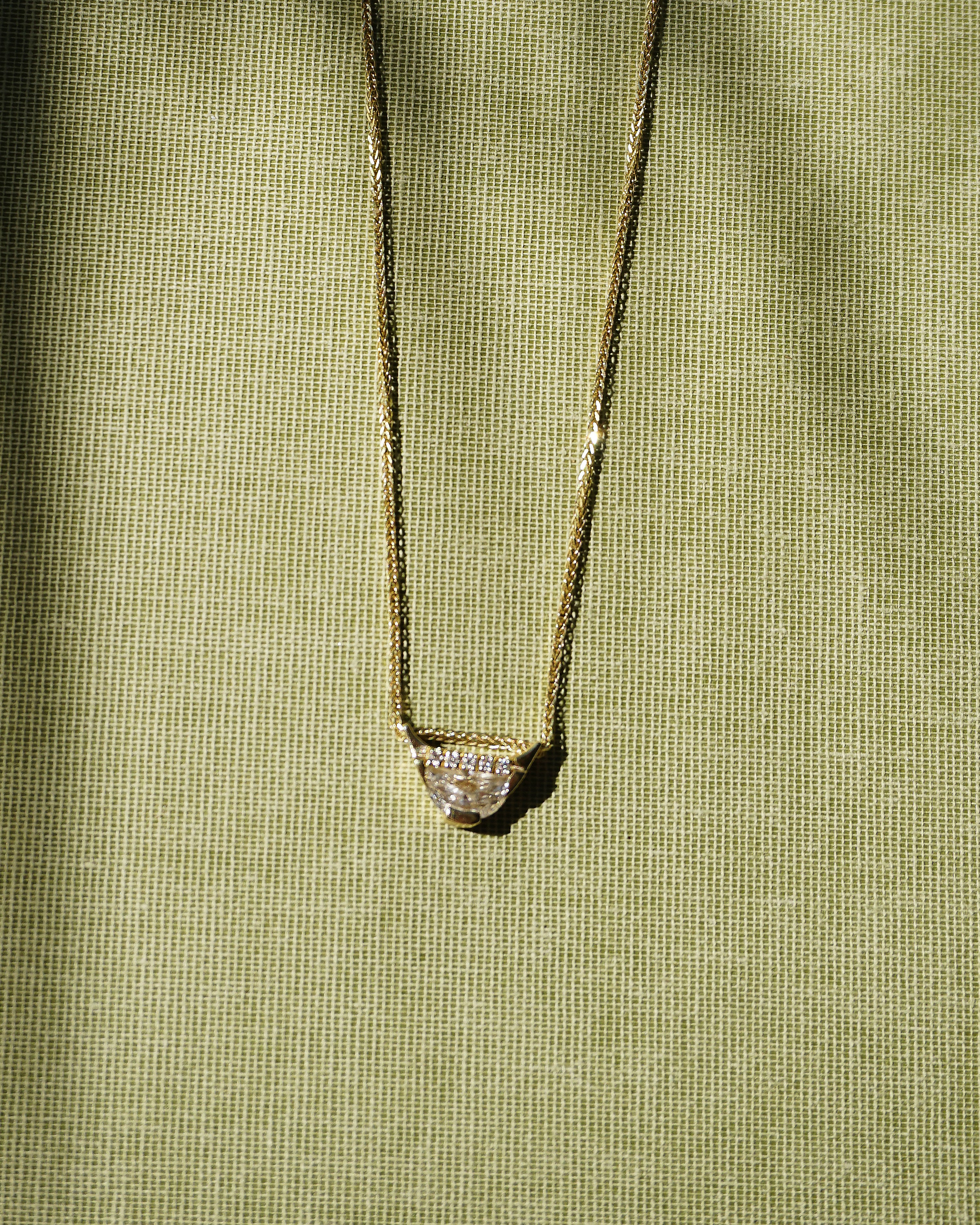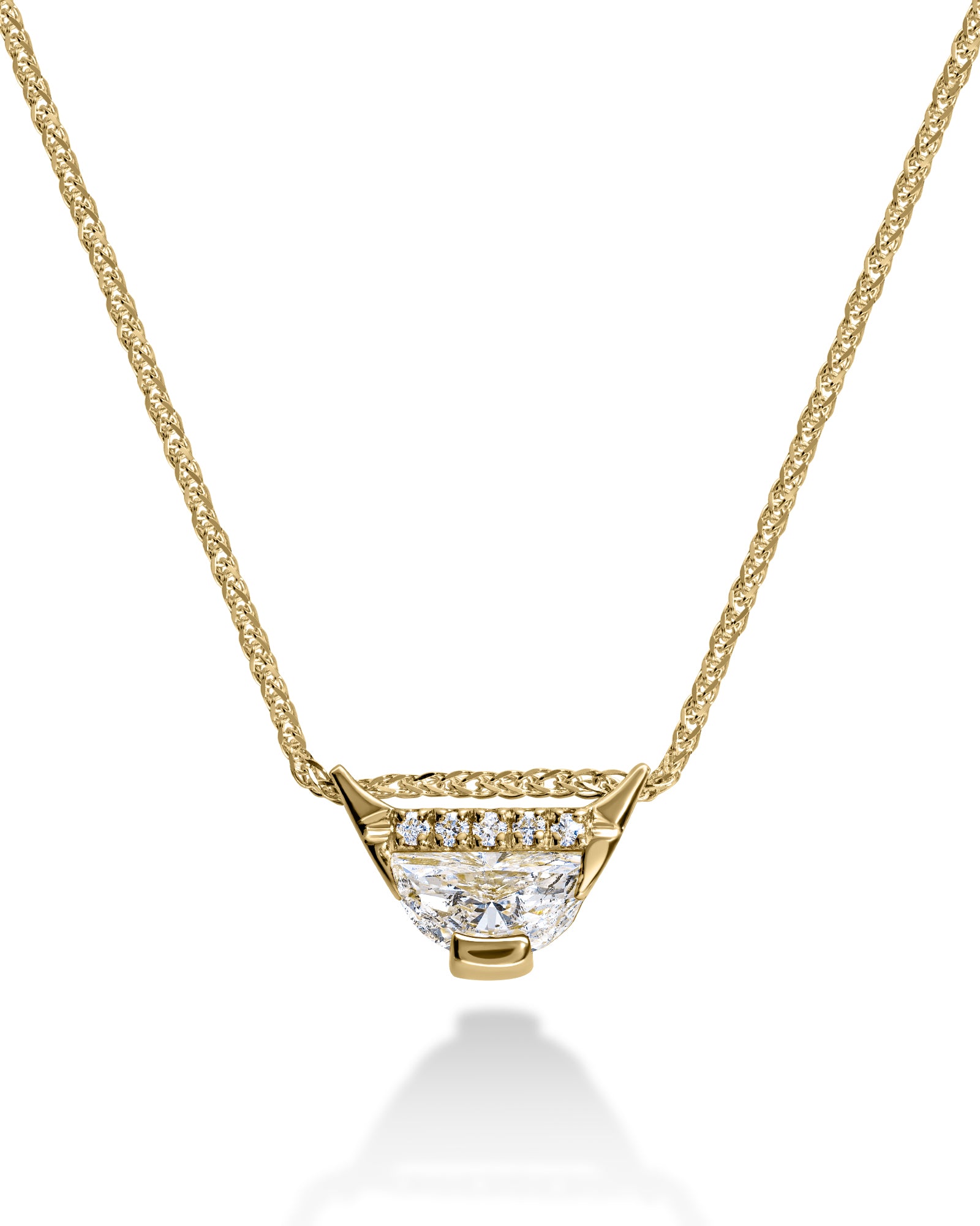 The LUNA necklace is a stunning embodiment of timeless elegance and refined craftsmanship. Featuring a dazzling diamond encased in a delicate gold setting , its unmatched clarity and sparkle capture light beautifully, radiating a mesmerizing brilliance.