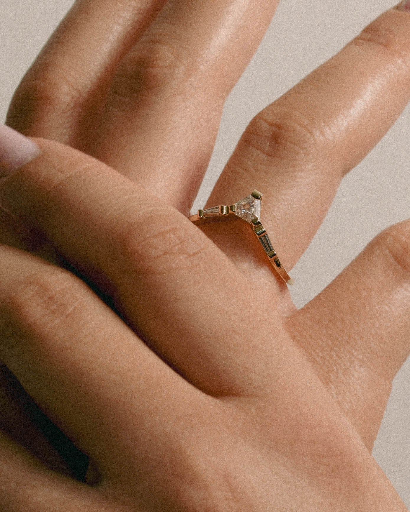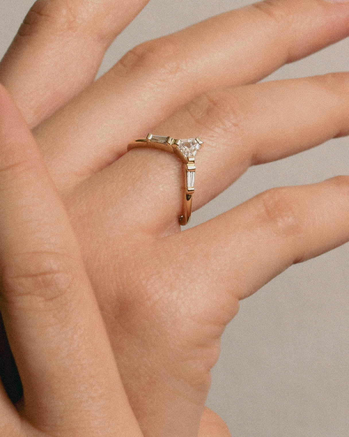 The Florence Ring is designed to captivate and enchant at first glance. This stunning piece features a mesmerizing hexagonal diamond at its center, exuding brilliance and fire from every facet. The unique combination of geometric shapes and the flawless integration of the diamonds creates a harmonious and balanced aesthetic that draws the eye in.
