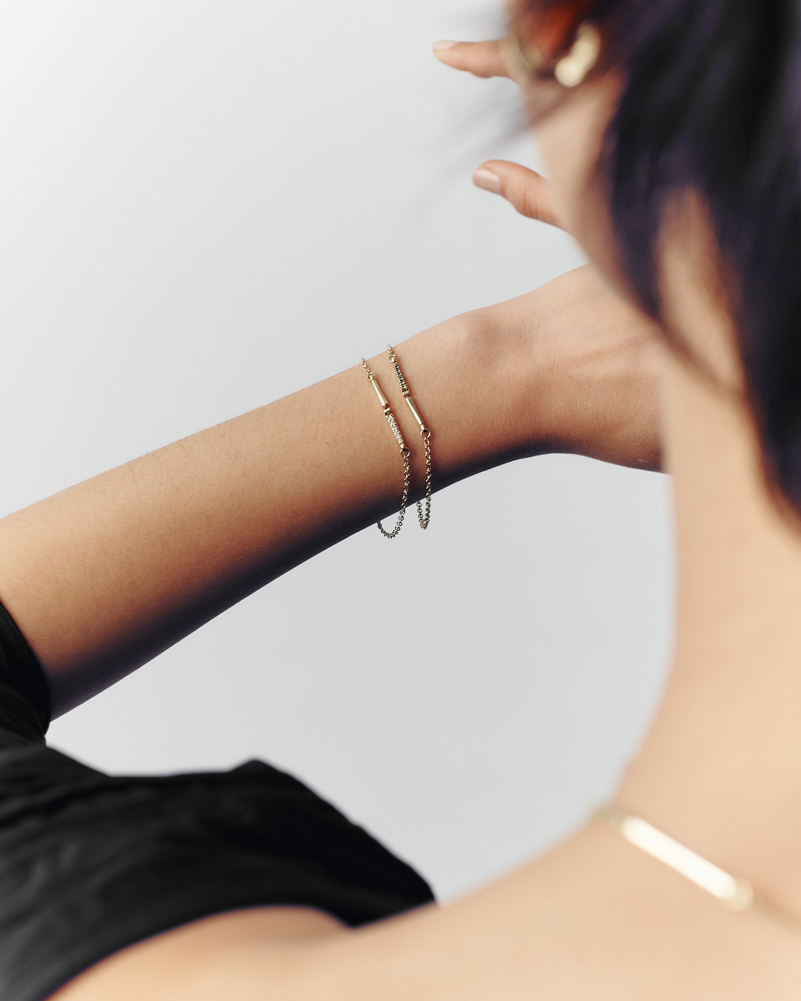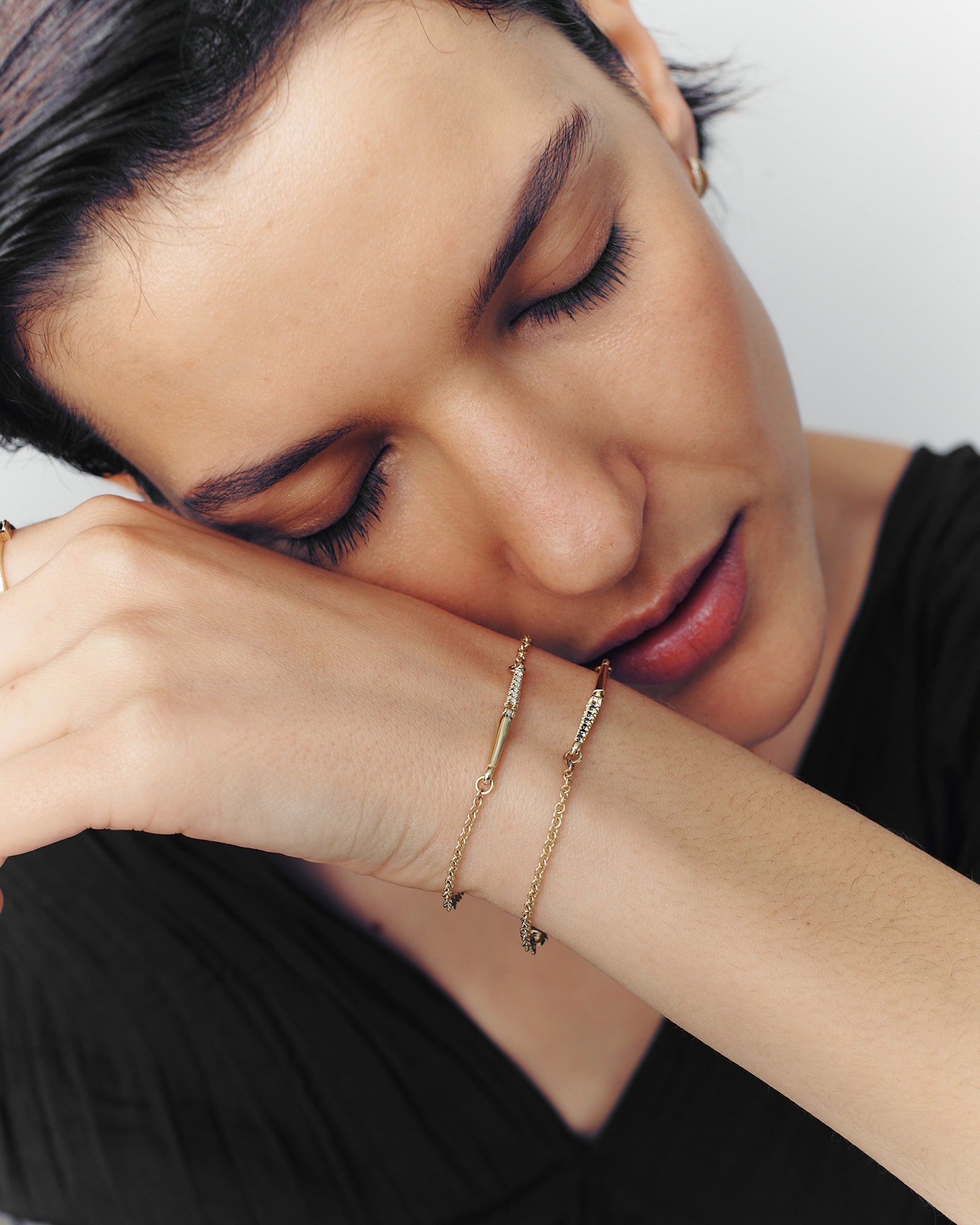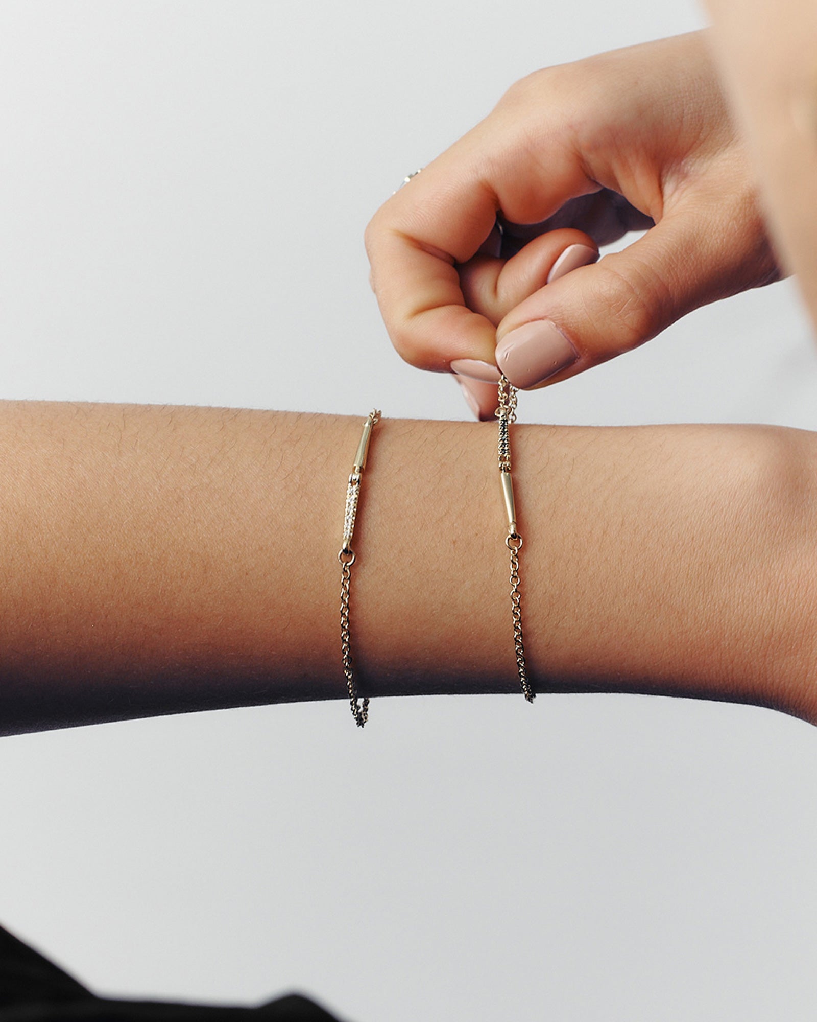 The May black diamonds bracelet is a must-have for any jewelry collection. Delicate and refined, it features six dazzling black diamonds set in gold, making it the perfect accessory to embrace your wrist with timeless elegance.