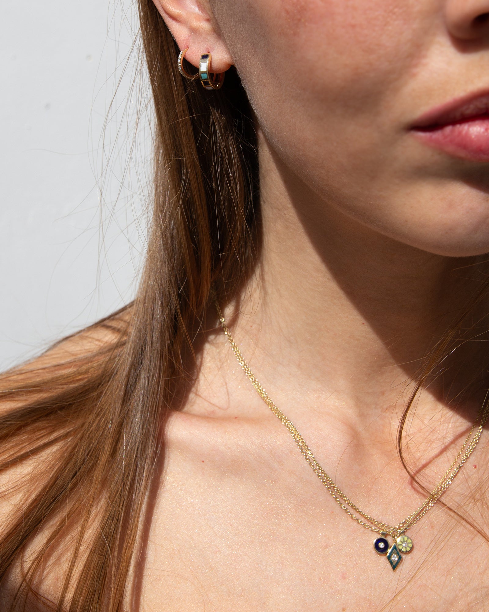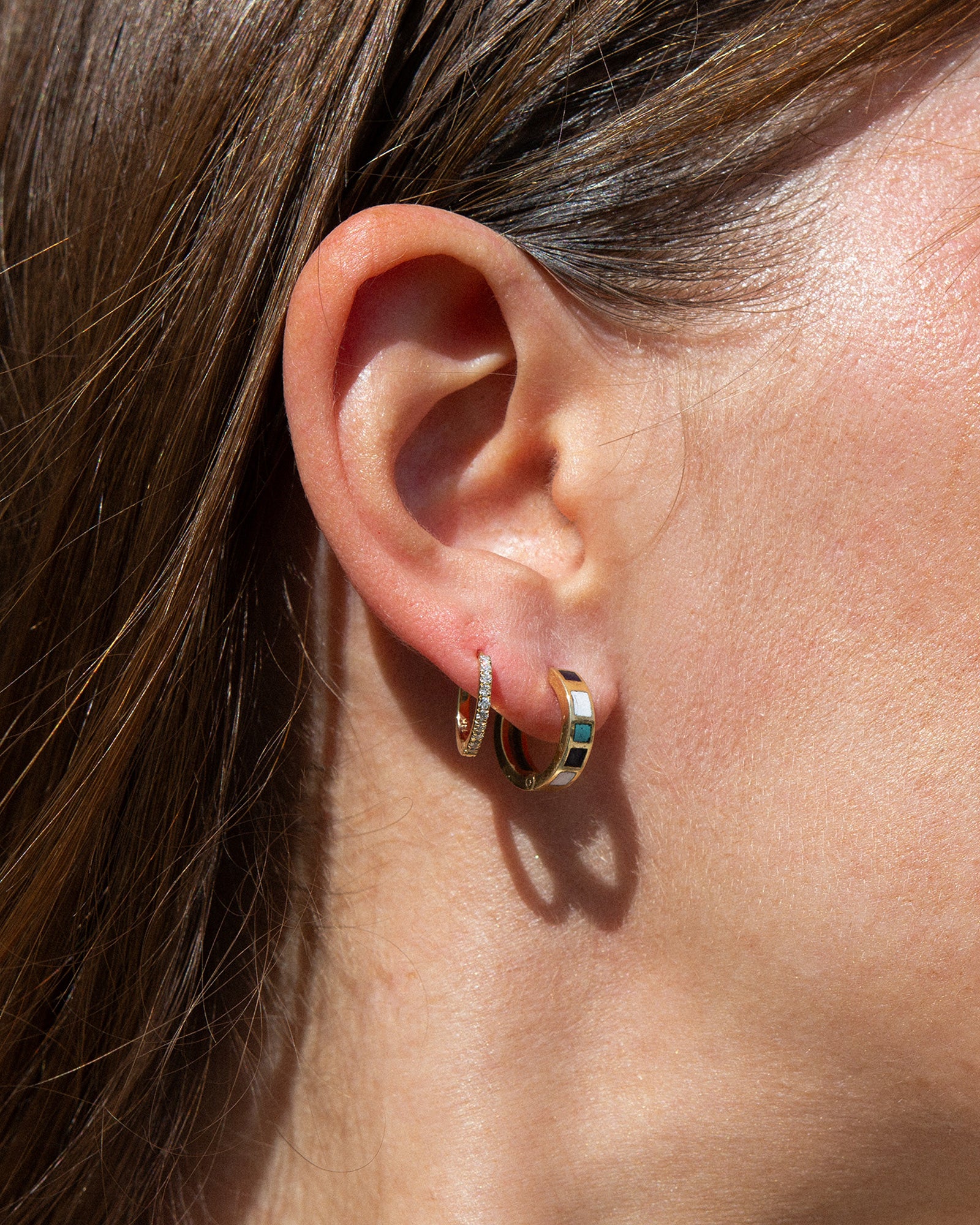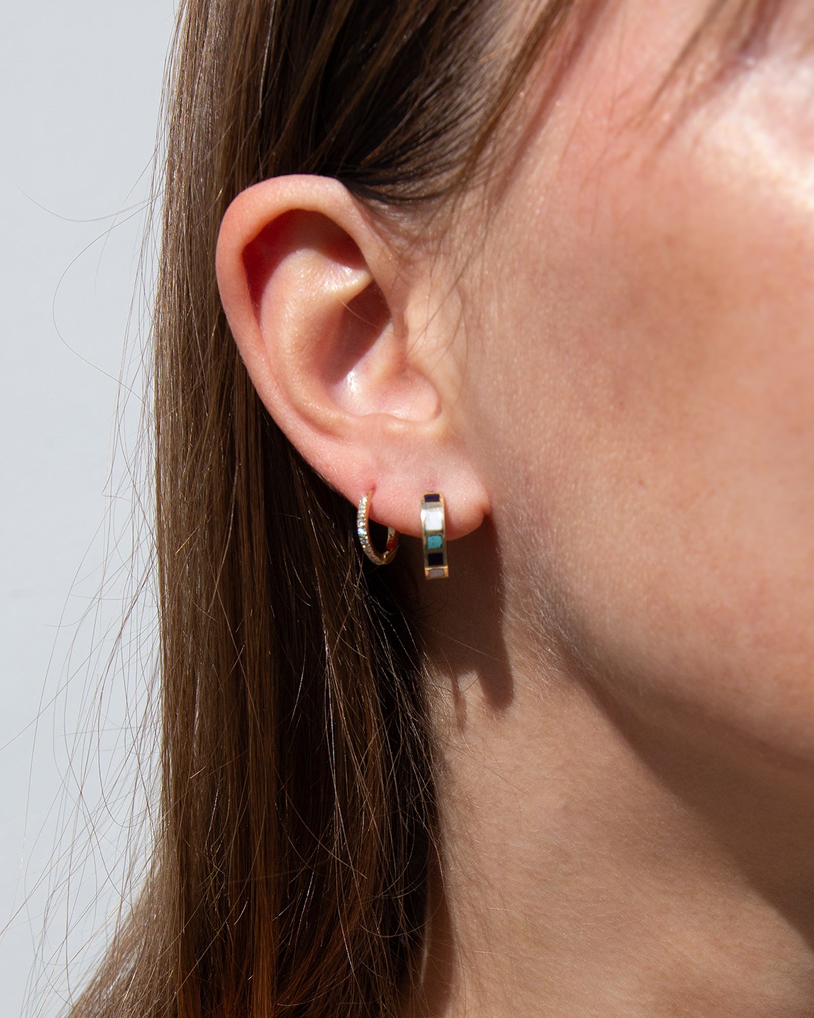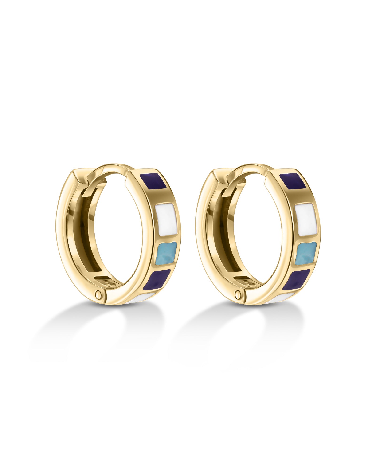Discover a vibrant celebration of color in the Mosaic Hoop Earrings. These exquisite hoops feature hand-painted enamel in a rich mosaic of shades, each hue capturing the essence of joy and beauty found in nature. Wear them to express your unique style and to carry a piece of the local landscape's colors with you wherever you go.