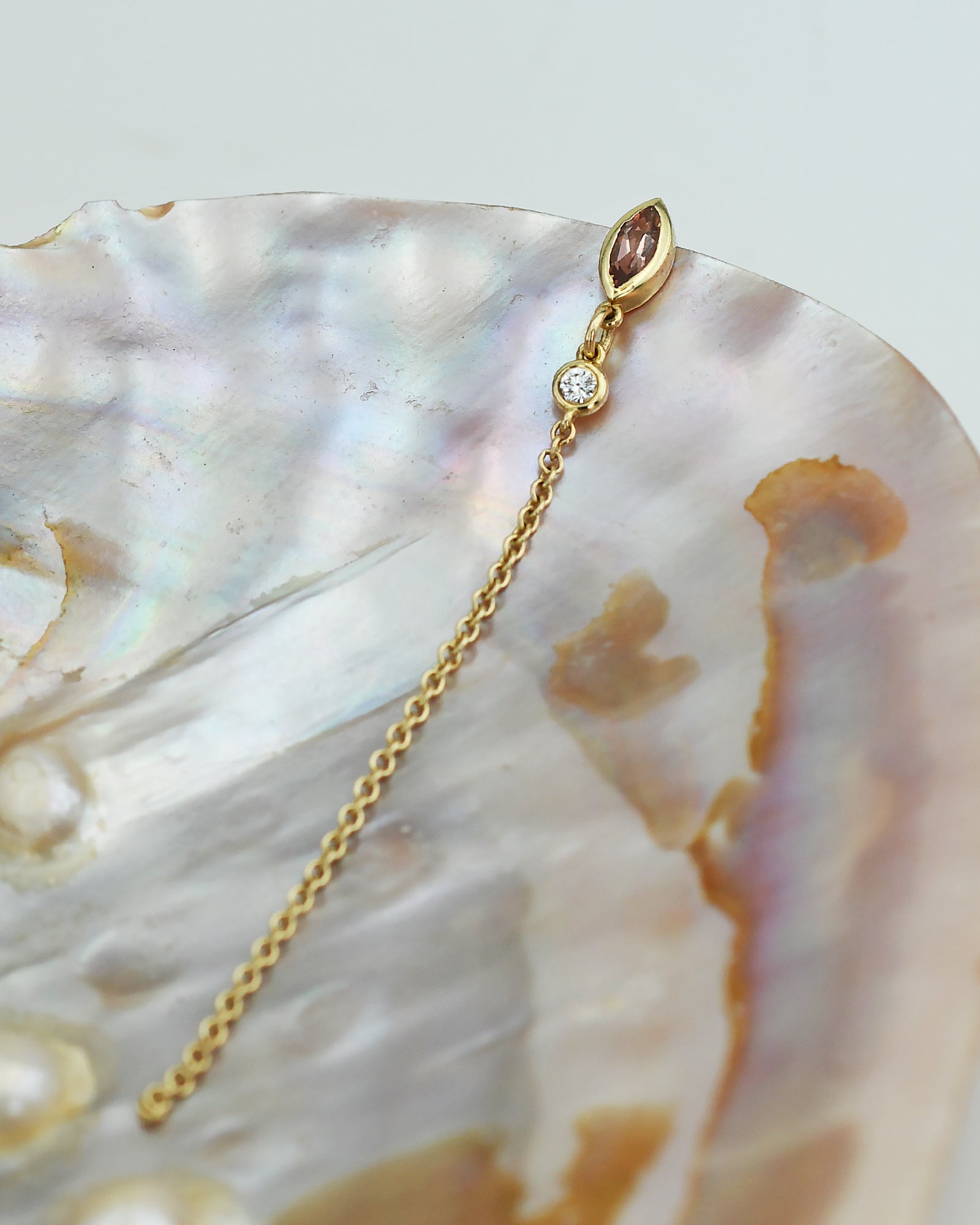 Rainbow Pink tourmaline & Diamond Earring - SINGLE