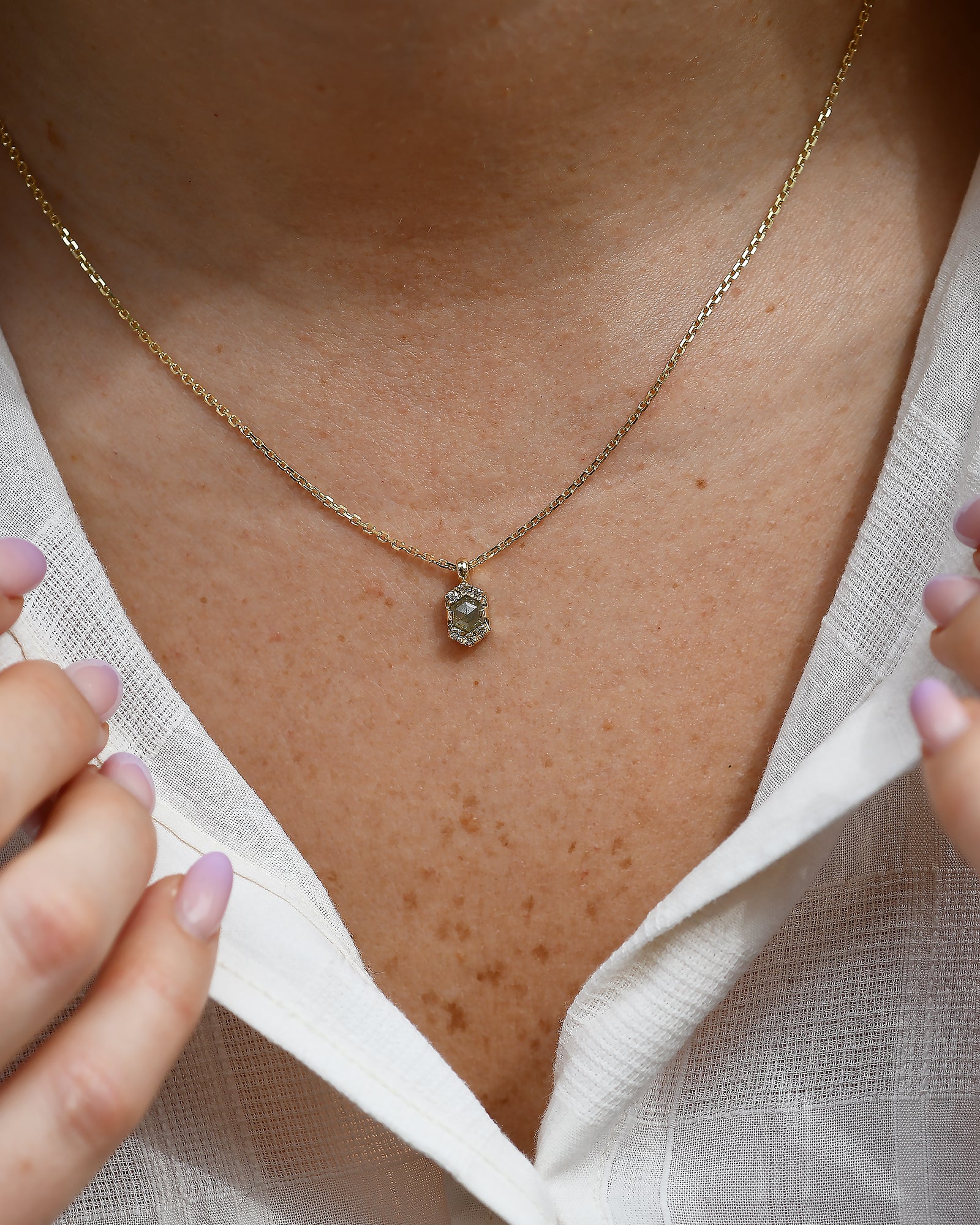 In the Sigma Necklace, gray and white diamonds unite, forming a canvas of enchantingshades and pure brilliance. Embrace the artistry woven into each delicate detail, and wear this exquisite creation as your unique interpretation of a timeless classic.