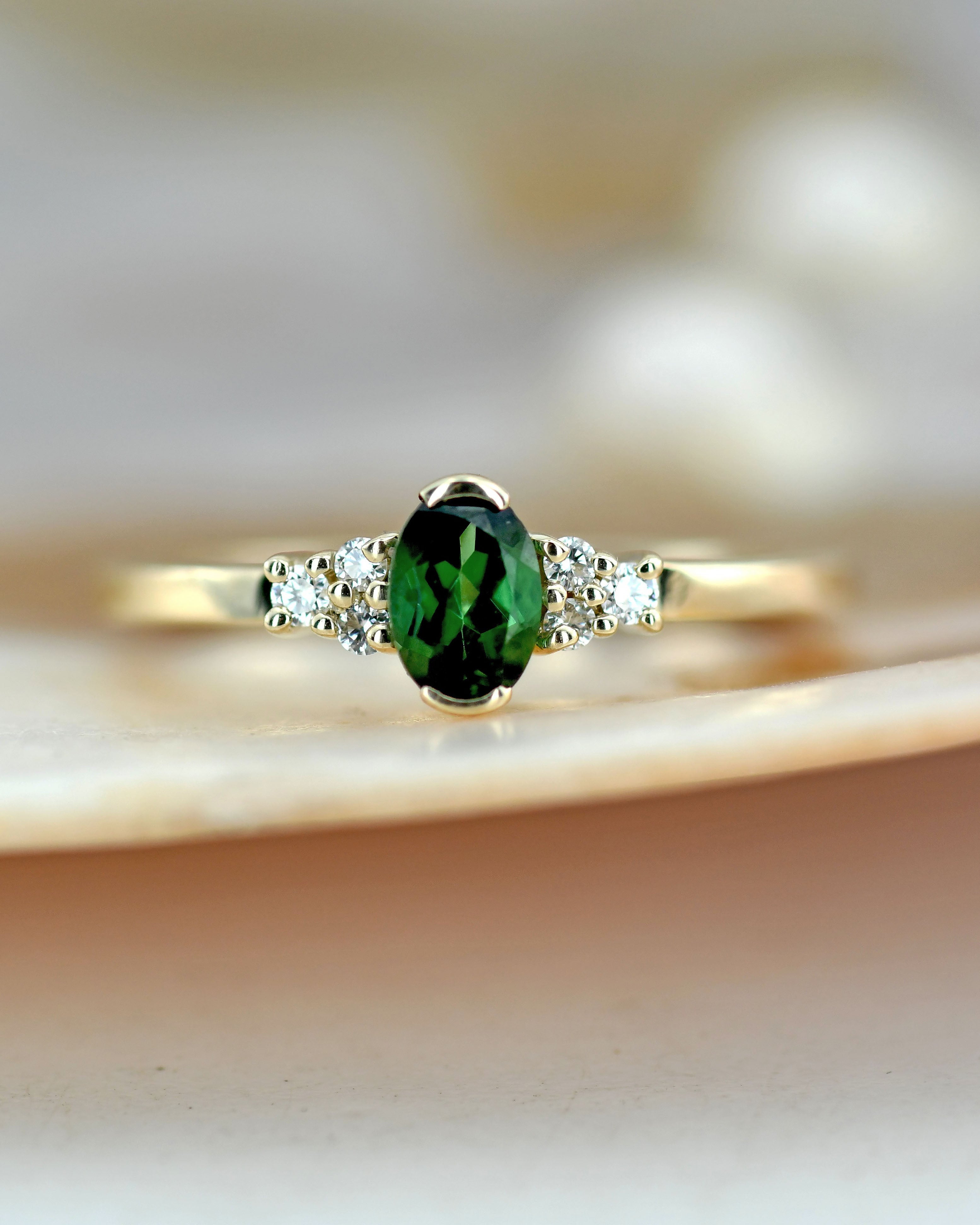Propose with elegance and style with our Sofia  ring , featuring a natural dark green natural tourmaline that sparkles with every movement. Crafted with precision and attention to detail’s, this ring is a timeless symbol of your love and devotion.
