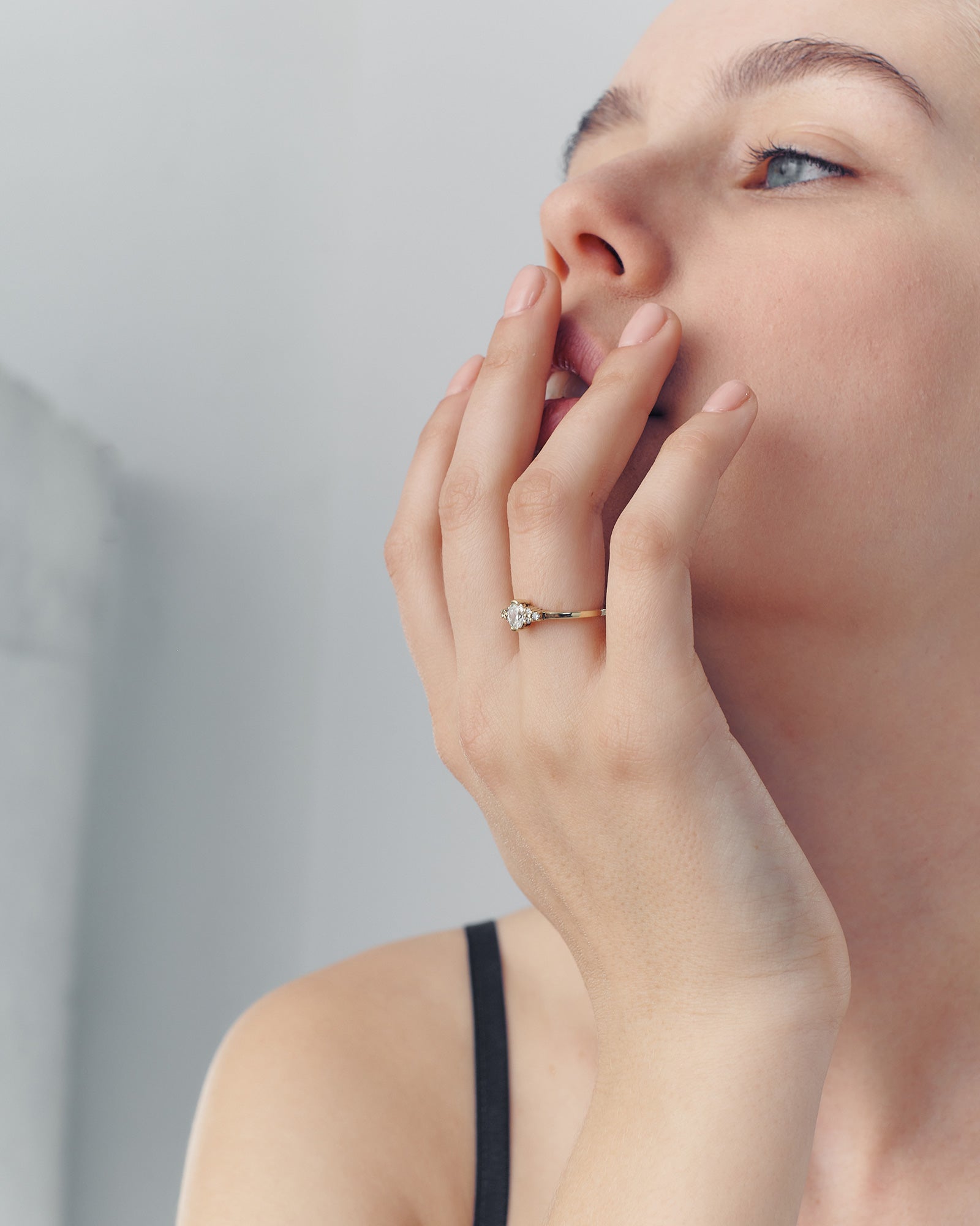 Propose with elegance and style with our Sofia engagement ring, featuring a brilliant cut diamond that sparkles with every movement. Crafted with precision and attention to detail’s, this ring is a timeless symbol of your love and devotion.
