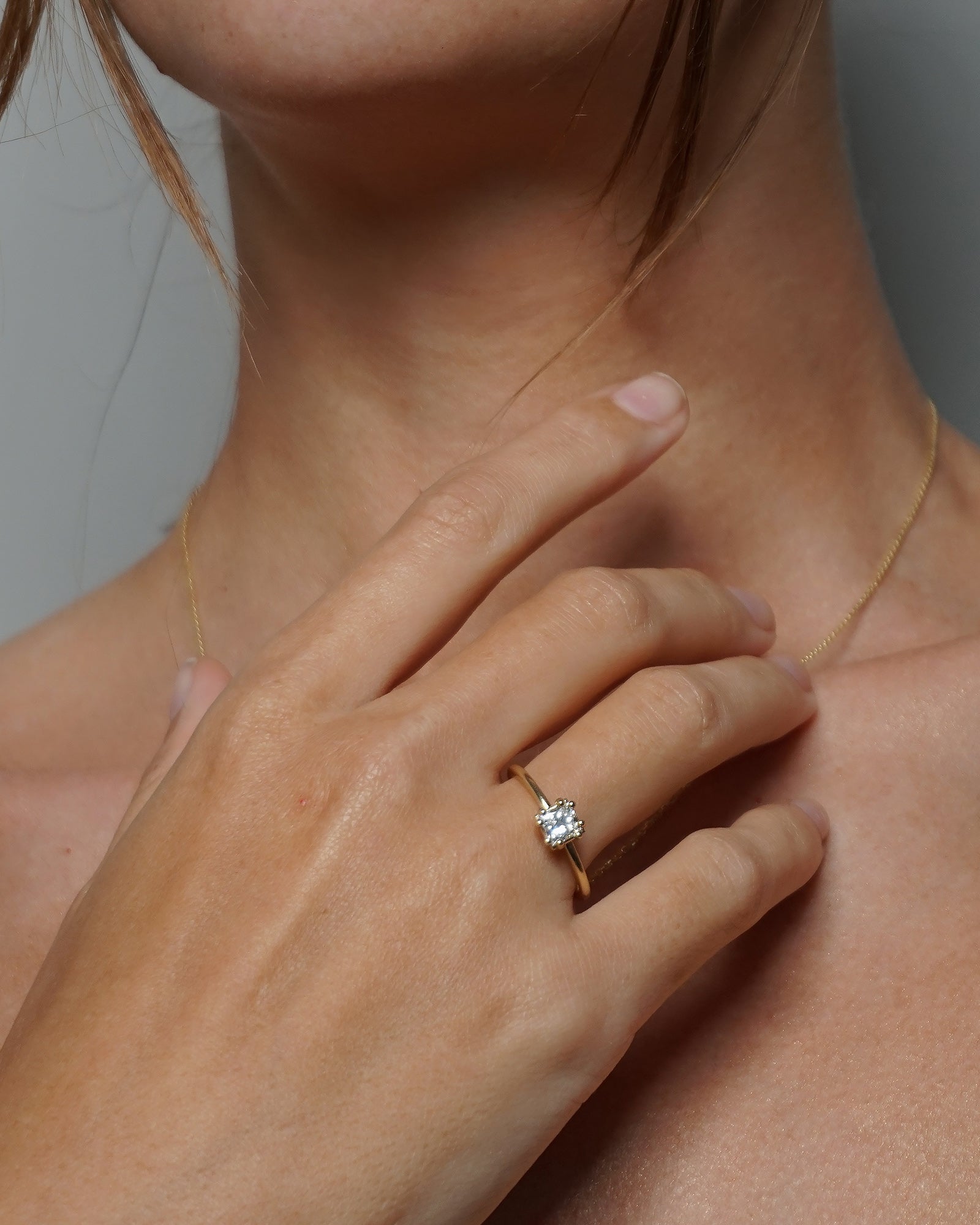 Fall in love with the eternal charm of our Suzanne engagement ring. Its flawless design perfectly complements the glamour of the brilliant-cut diamond, capturing the essence of your unique love story. Cherish every moment with this timeless engagement ring.