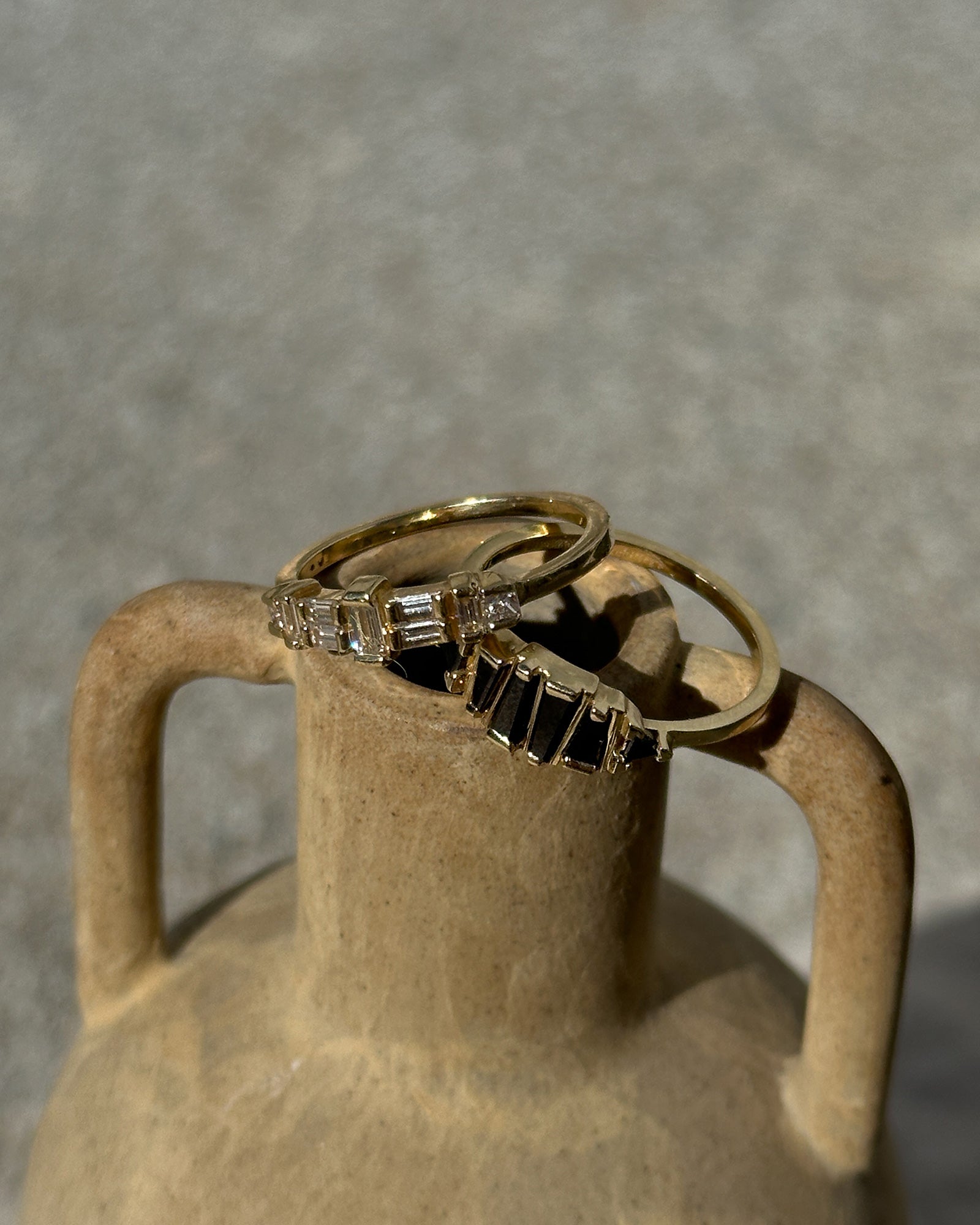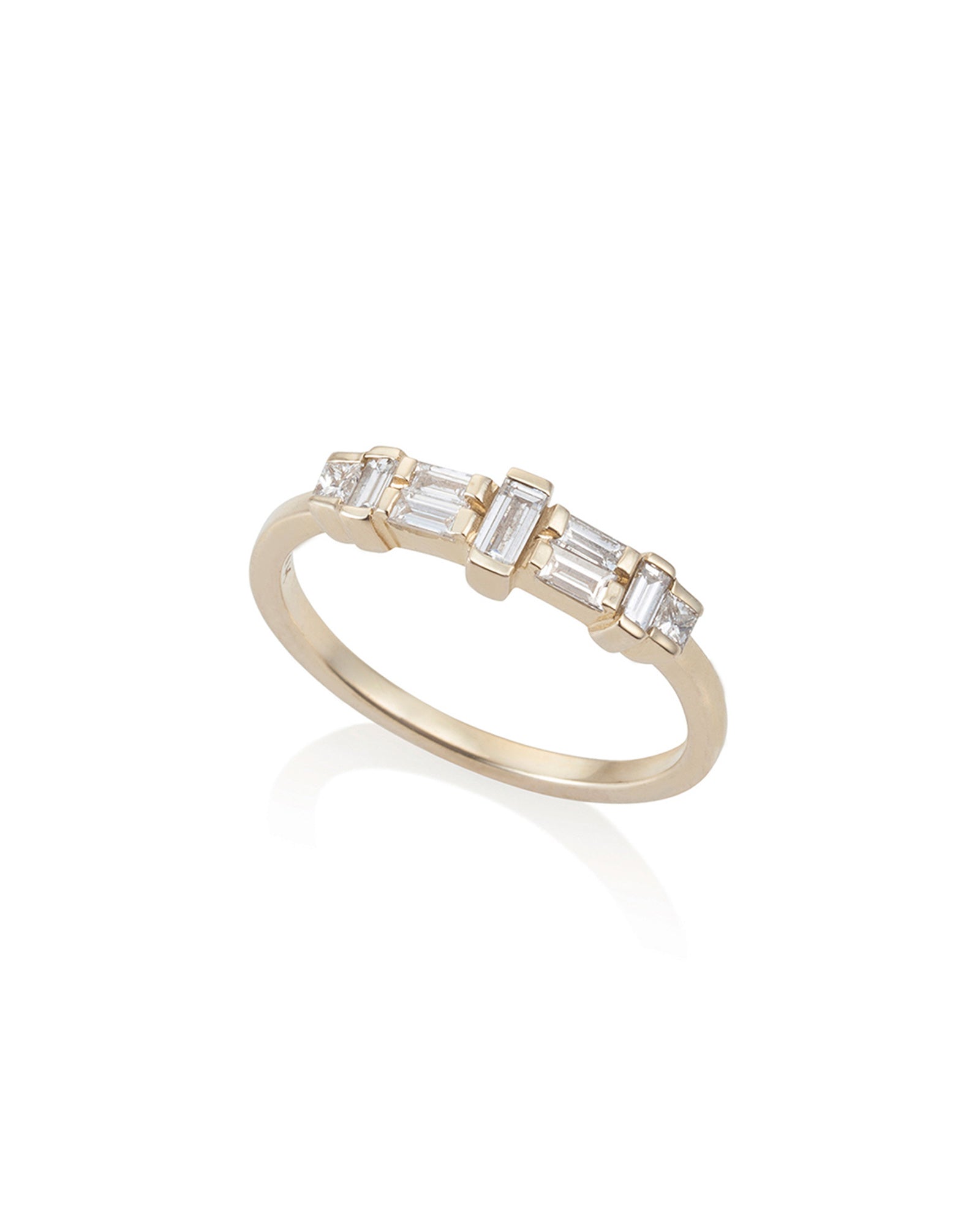 Inspired by the romantic city of Venice, this engagement ring features a breathtaking arrangement of baguette diamonds, creating a truly unique and captivating design.The Venice ring is sure to take your partners breath away and become a beloved part of your journey together.