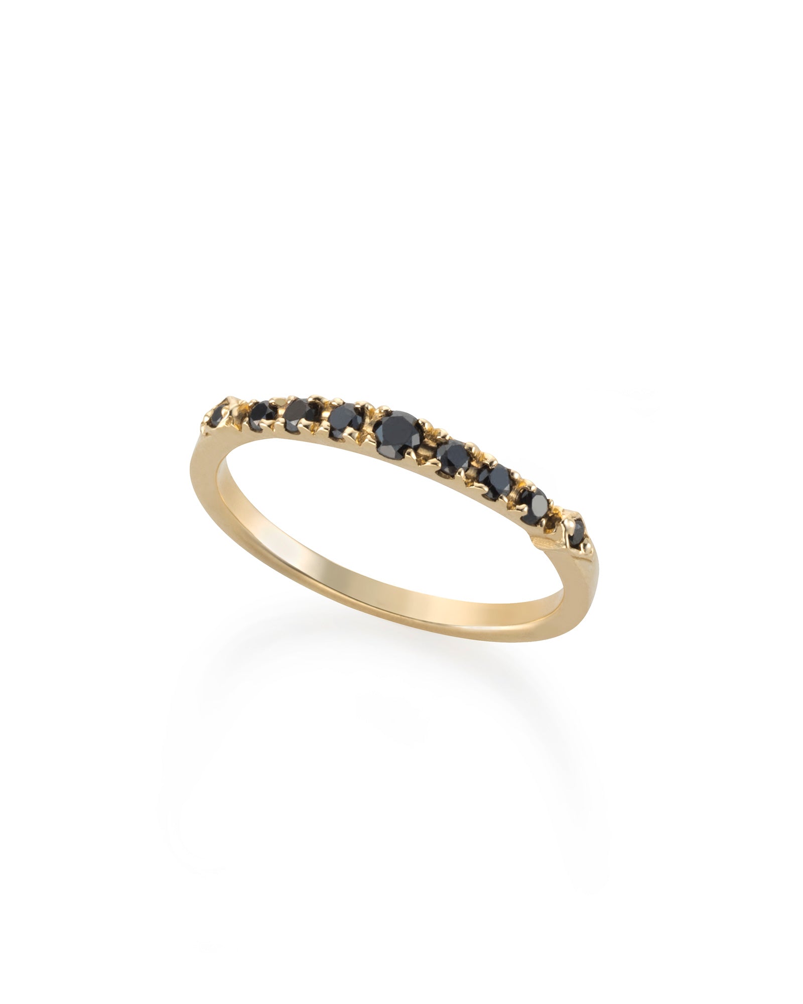Unveil the captivating Violet Black Diamonds Ring, casting a spell of mysterious allure. Adorned with a sequence of black diamonds, it showcases delicately elevated stones on each side, crafting a captivating dark aura on your finger. Versatile and effortlessly paired with other rings, the Violet Ring is the missing piece you've been searching for.